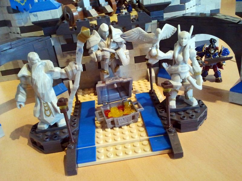 Avec plus de 800 pièces et un magnifique dragon en prime, nous avons donc commencé par le château, non pas sans craintes vu le nombre de pièces. Étonnamment, le temps n'a pas été proportionnel au nombre d'éléments. Après environ trois heures de montage, l'ensemble se dressait fièrement devant nous. Le dragon est superbe. Les effets de lumière sur les ailes sont de toute beauté, grâce notamment à des trous placés dans les parties transparentes qui leur donnent un côté réel, et leurs couleurs des mieux choisies. Le dragon est entièrement articulé, les ailes comme les pattes peuvent être bougées à votre convenance. Le château est également bien conçu. Il ne s'agit pas ici d'un château complet mais de la façade de celui-ci. Les décors ont un rendu agréable, avec les deux arches et les drapeaux accrochés aux tours. Et quand la catapulte se met à cracher ses boulets, la guerre est aux portes de votre salon ! À noter que les statues sont en plastique souple afin probablement d'éviter les casses provoquées par les tirs d'armes de siège. Un niveau de finition impeccable donc pour ce premier coffret qui donne envie pour la suite.