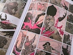 Ce qui frappe dans Drome, c'est la structure des pages : Jesse Lonergan n'en n'est pas à son coup d'essai. Des planches tantôt découpées en multiples cases rectilignes, comme rangées dans une ville américaine vue de haut ; et tantôt tranchés par les mouvements de l'action. Et souvent : de nombreux dessins qui s'entre-mêlent, pour composer des séquences géantes, dénuées de texte. On se promène dans Drome autant qu'on lit. La narration prend de la force, les actions deviennent explosives. Et quand il s'agit de calmer le jeu, les planches prennent une forme plus douce, au rythme moins énervé. Une lecture visuelle peu répandue mais qui prend ici tout son sens.
