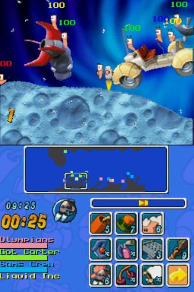 La version DS est évidemment moins fine visuellement, mais le deuxième écran s'avère crucial pour la gestion des armes et des informations de jeu. Armé de votre stylet, vous pointez directement l'arme qu'il vous faut, prêt à atomiser du ver. Toutefois, c'est lorsque vous voudrez démontrer votre maîtrise de la corde ninja à vos amis que la version ds montrera son efficacité : contrairement à la version PSP nécessitant autant de jeux que de joueurs, une seule cartouche suffit pour des parties endiablées à quatre. Reste la possibilité de faire tourner la console pour jouer sur la même machine, mais vous perdez le plaisir de faire pleurer vos adversaires à la vue de leurs derniers vers éradiqués par un mouton piégé.