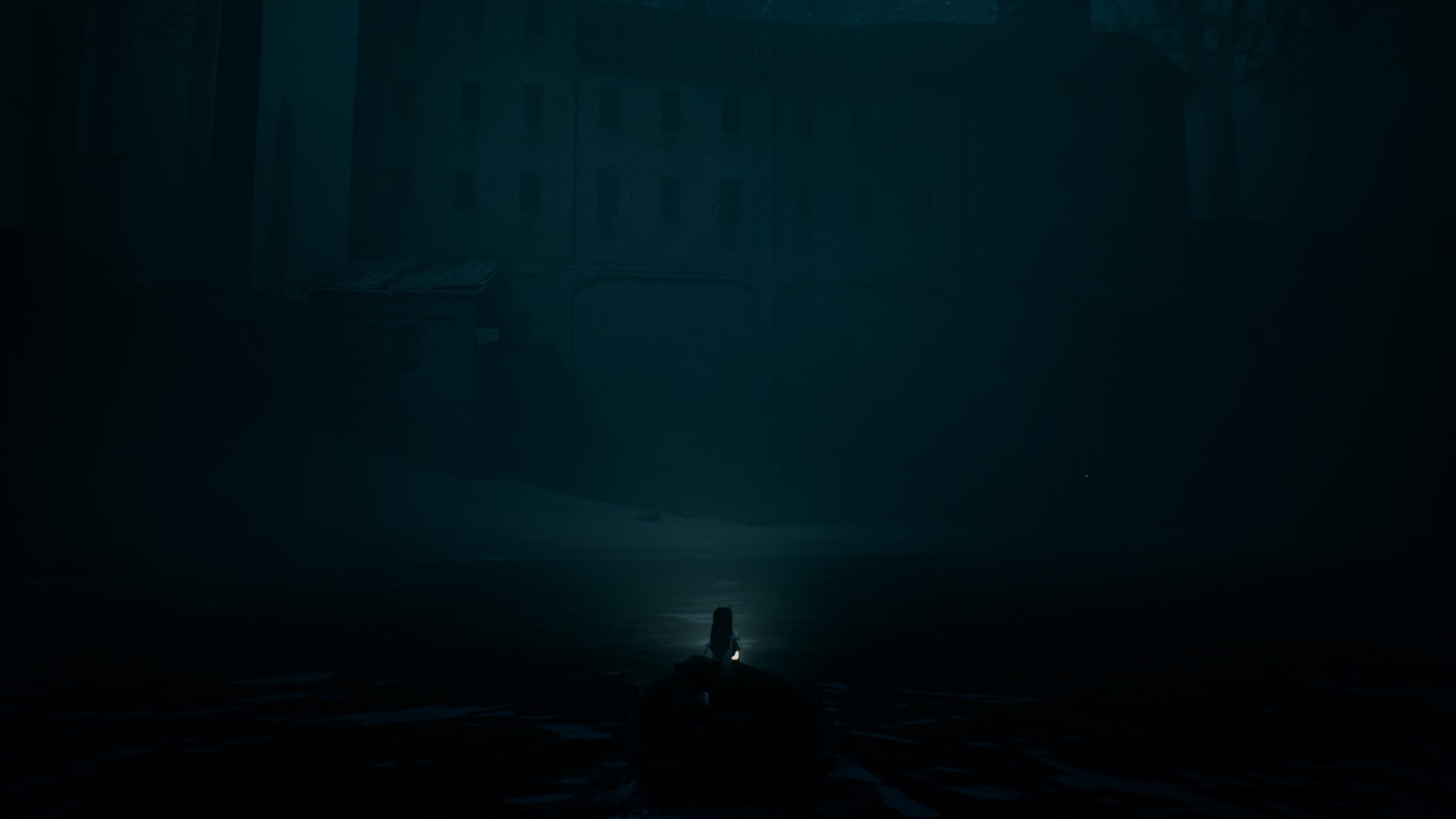 L'arrivée à terre n'est pas plus rassurante : devant nous se dresse un bâtiment monumental, austère, impossible à deviner. Hôpital ? Orphelinat ? Asile ? Colonie de vacances ? Quelle que soit la réponse, pousser la porte ne semble pas être une bonne idée... mais c'est évidemment ce qu'on va faire. Ajoutez à ça une musique minimaliste, grinçante, faite de cordes raclées doucement comme pour voir si votre nerf optique a des limites, et vous obtenez une entrée en matière absolument sidérante.