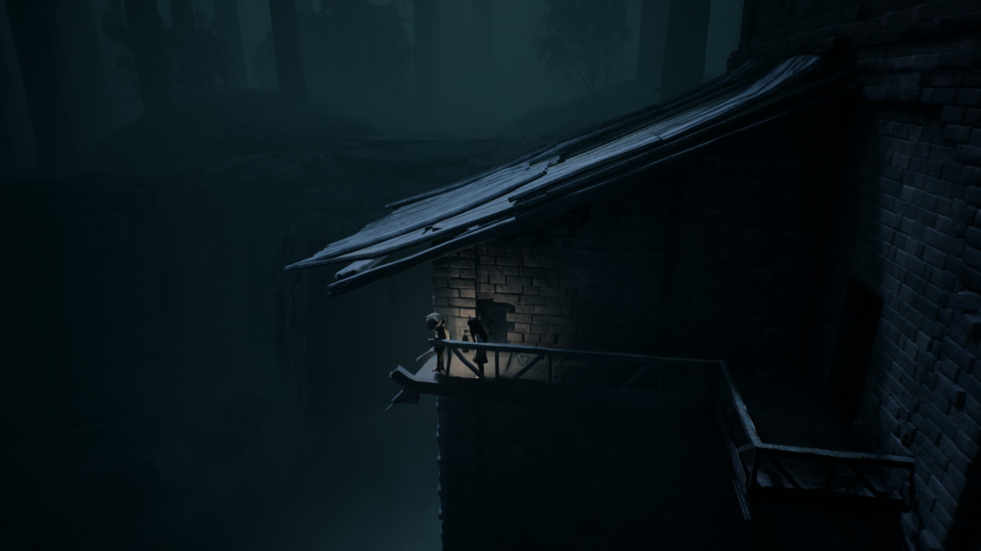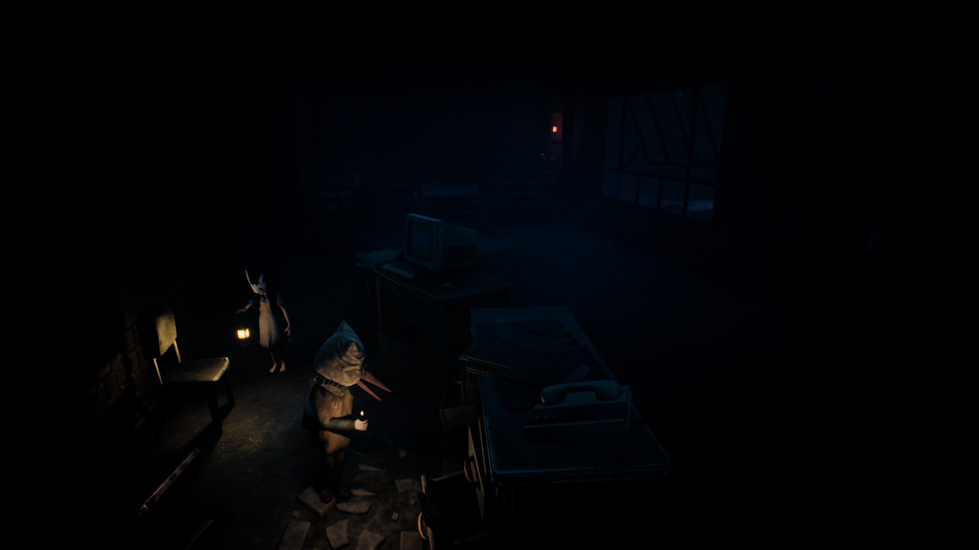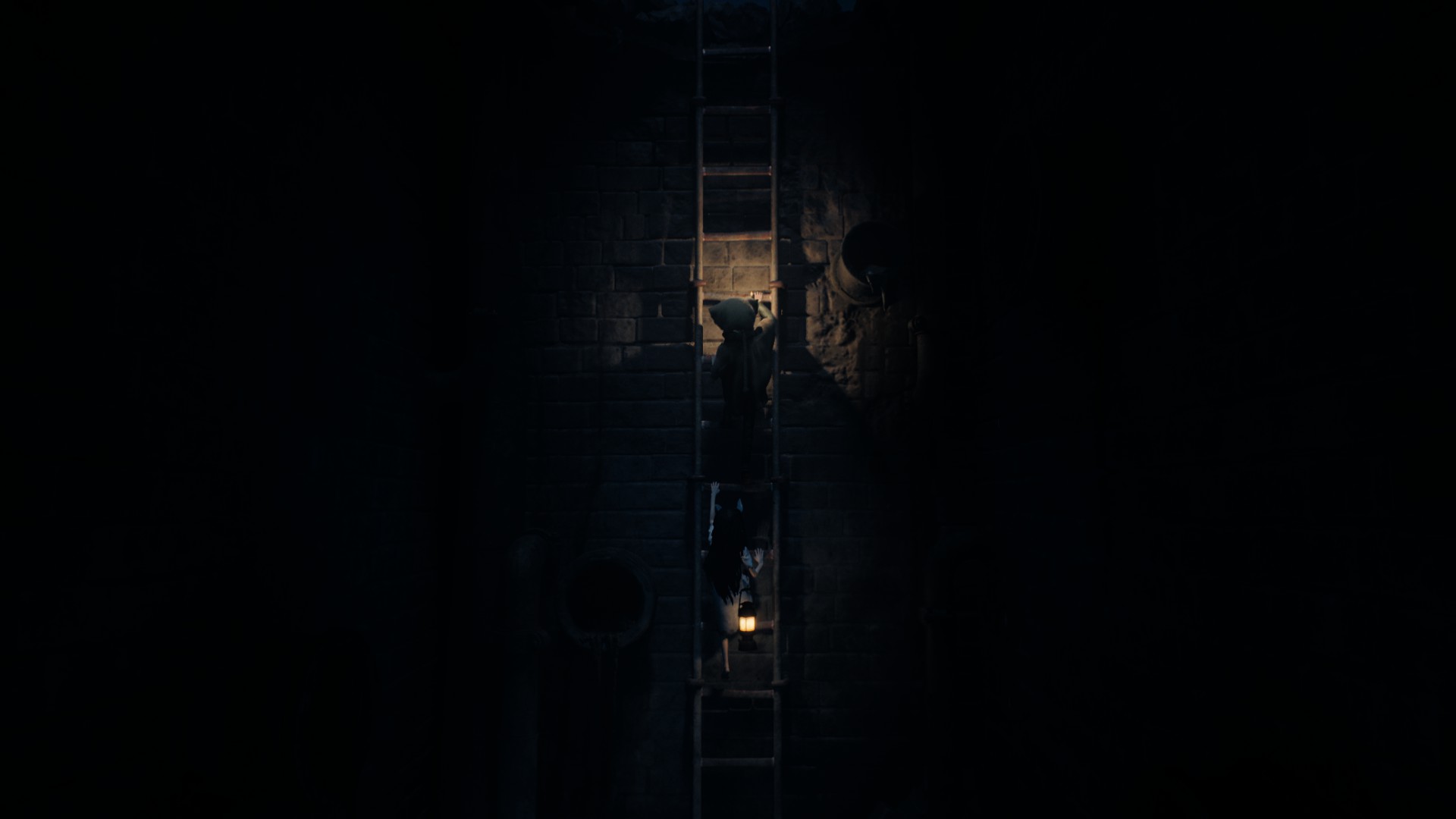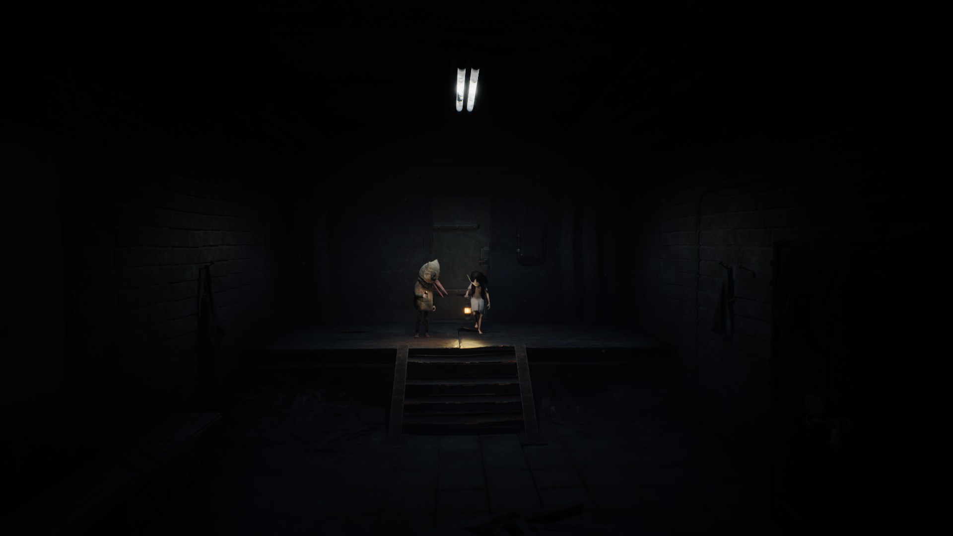 Très vite, on reconnaît la patte Tarsier : progression essentiellement latérale, environnements lugubres, silhouettes qui passent au loin, jumpscares parfaitement placés, et surtout coopération avec la fillette. Elle peut actionner des mécanismes, vous aider à atteindre des rebords trop hauts, ou encore créer des ouvertures indispensables à votre survie. Le duo fonctionne naturellement, comme un héritage assumé des mécaniques de Little Nightmares, mais avec cette dynamique à deux personnages qui modifie subtilement le rythme et les possibilités.