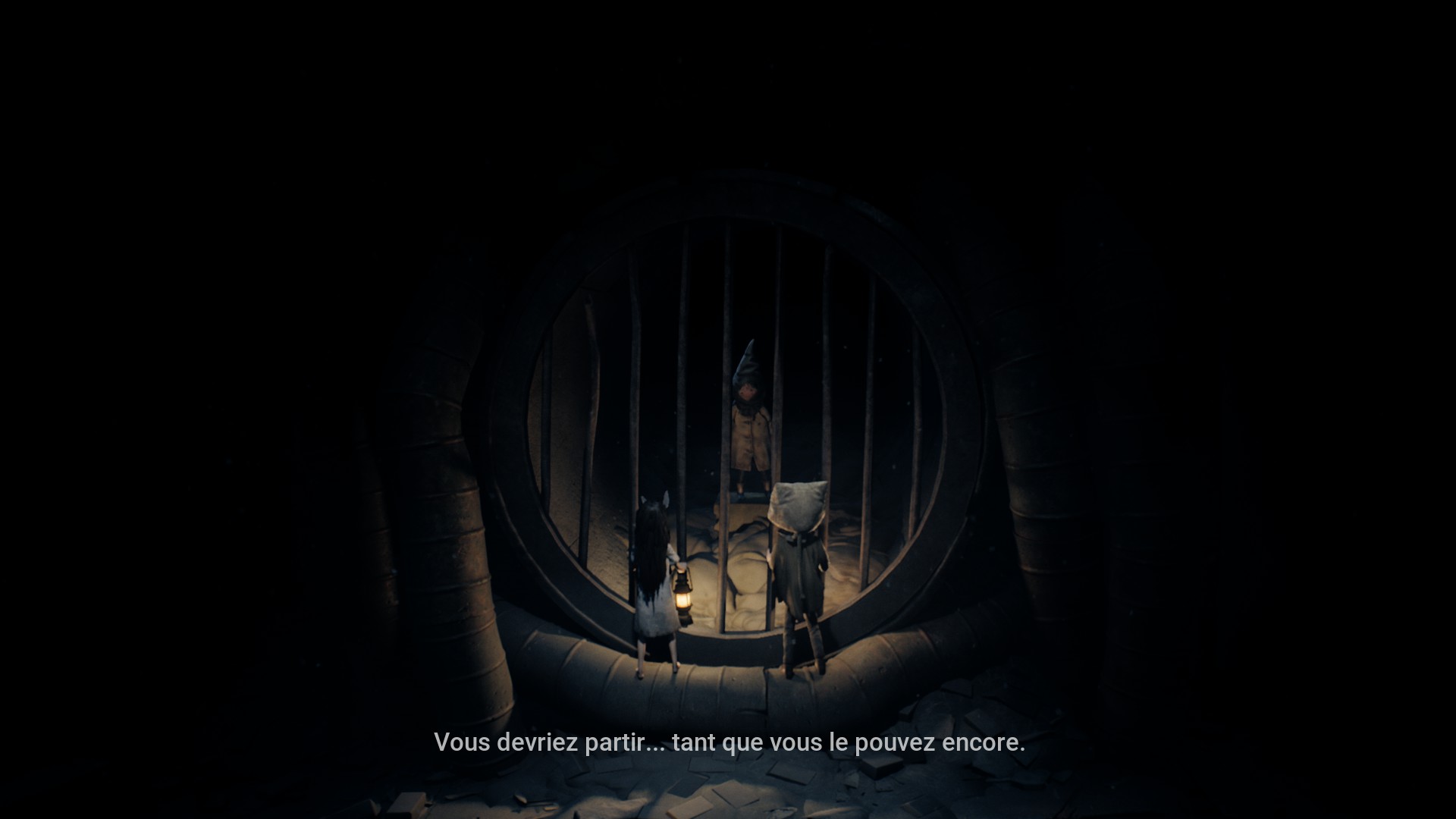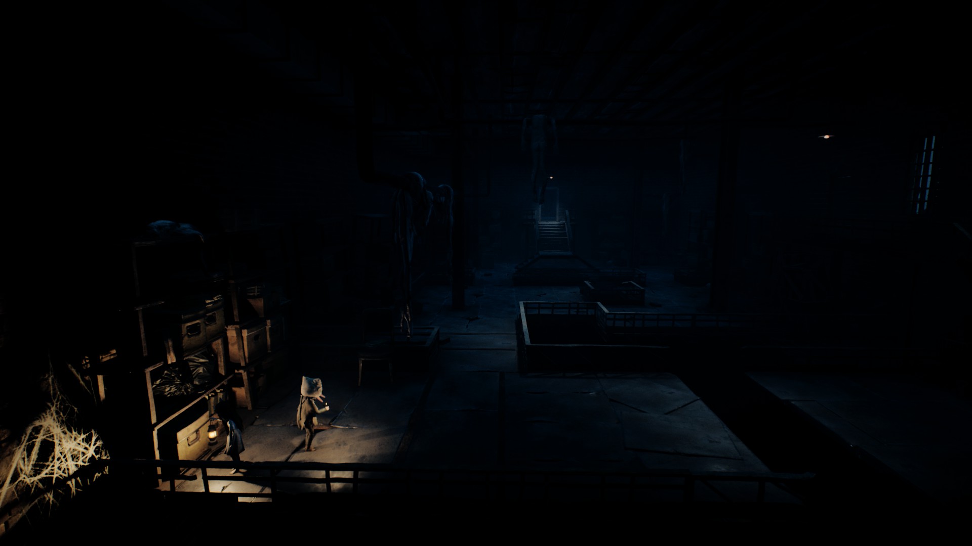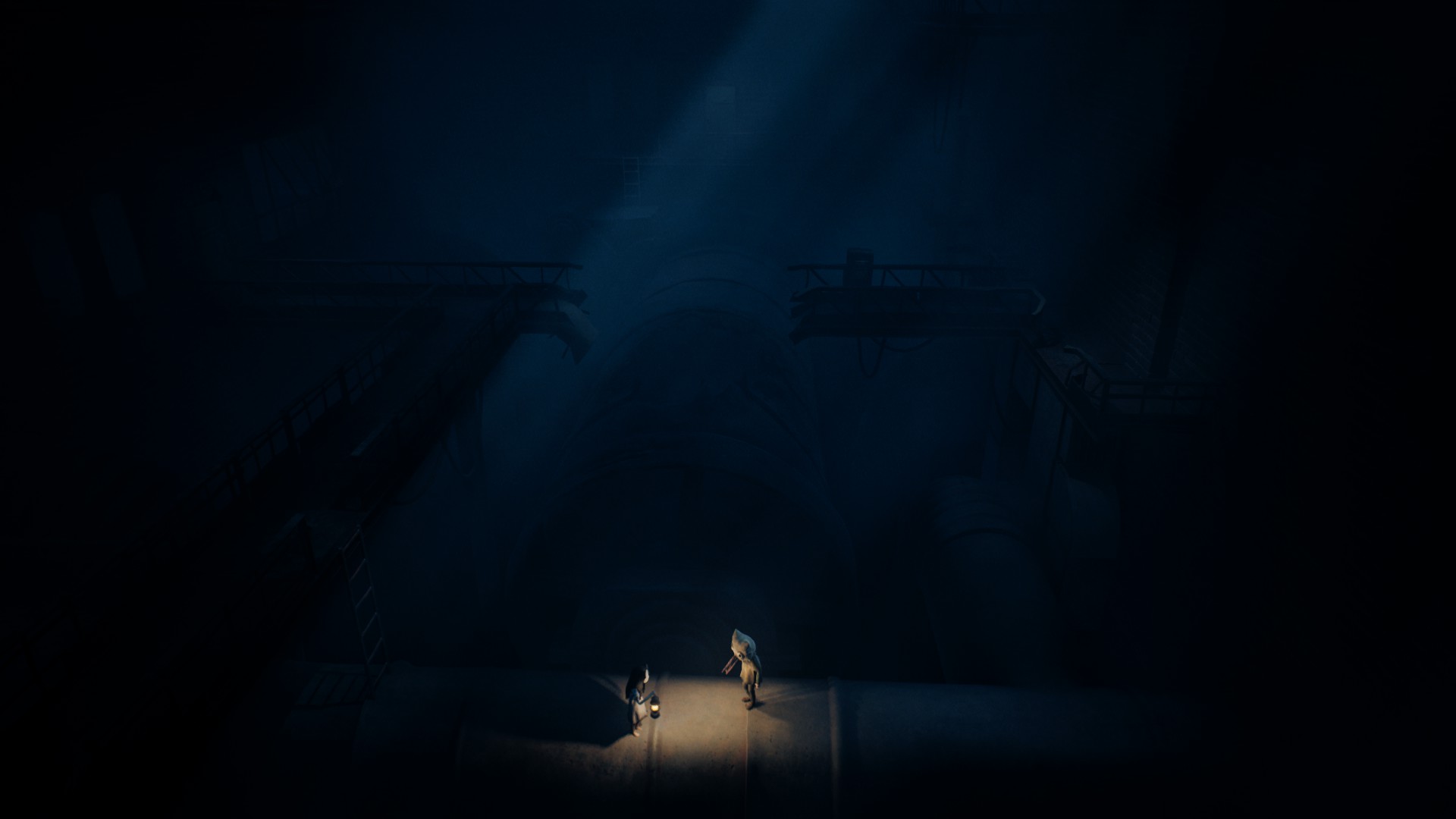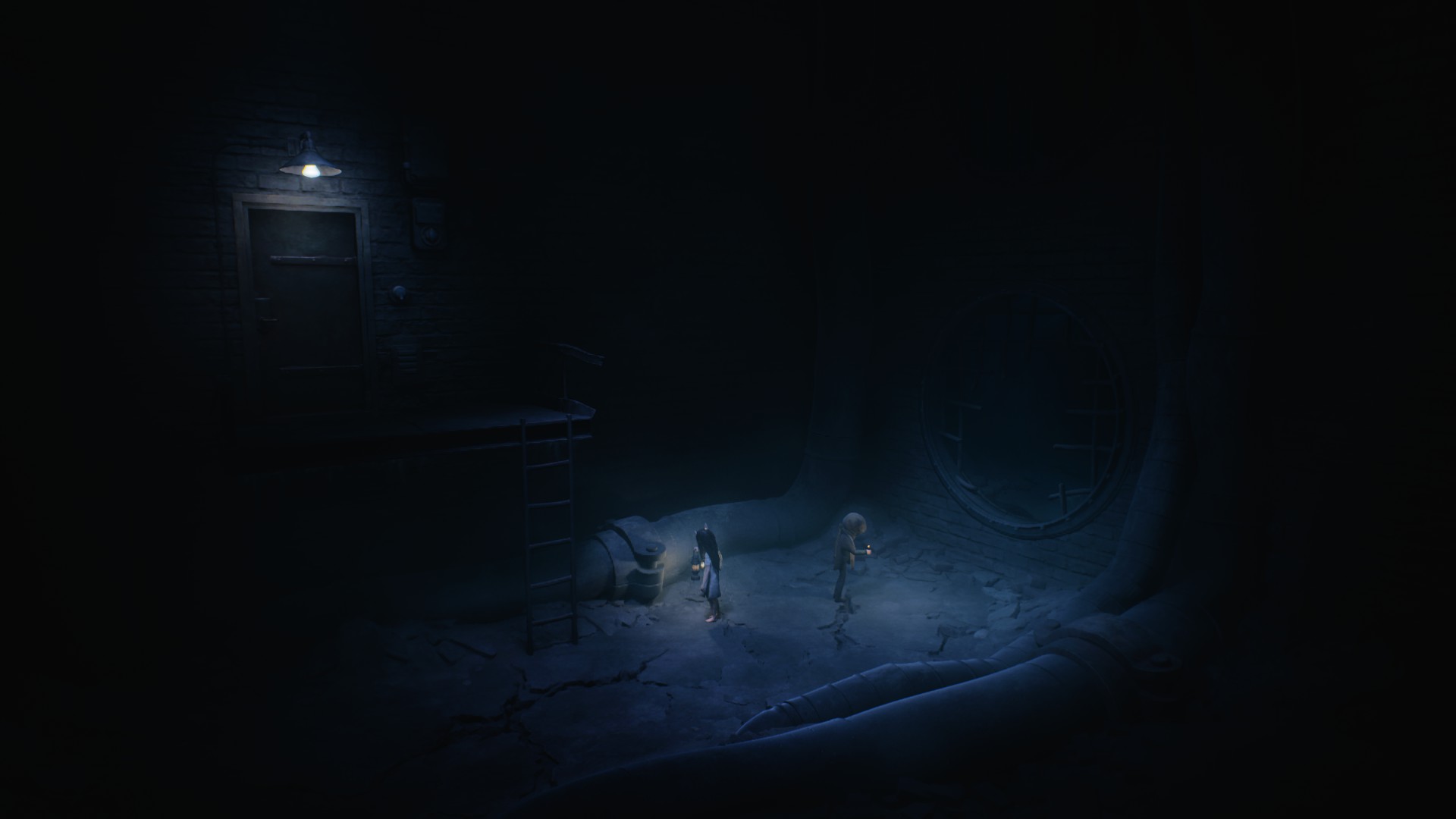 Très vite, on reconnaît la patte Tarsier : progression essentiellement latérale, environnements lugubres, silhouettes qui passent au loin, jumpscares parfaitement placés, et surtout coopération avec la fillette. Elle peut actionner des mécanismes, vous aider à atteindre des rebords trop hauts, ou encore créer des ouvertures indispensables à votre survie. Le duo fonctionne naturellement, comme un héritage assumé des mécaniques de Little Nightmares, mais avec cette dynamique à deux personnages qui modifie subtilement le rythme et les possibilités.