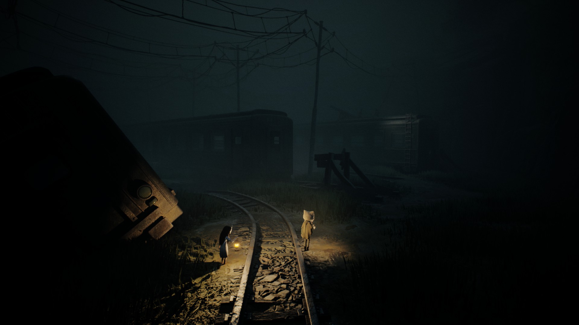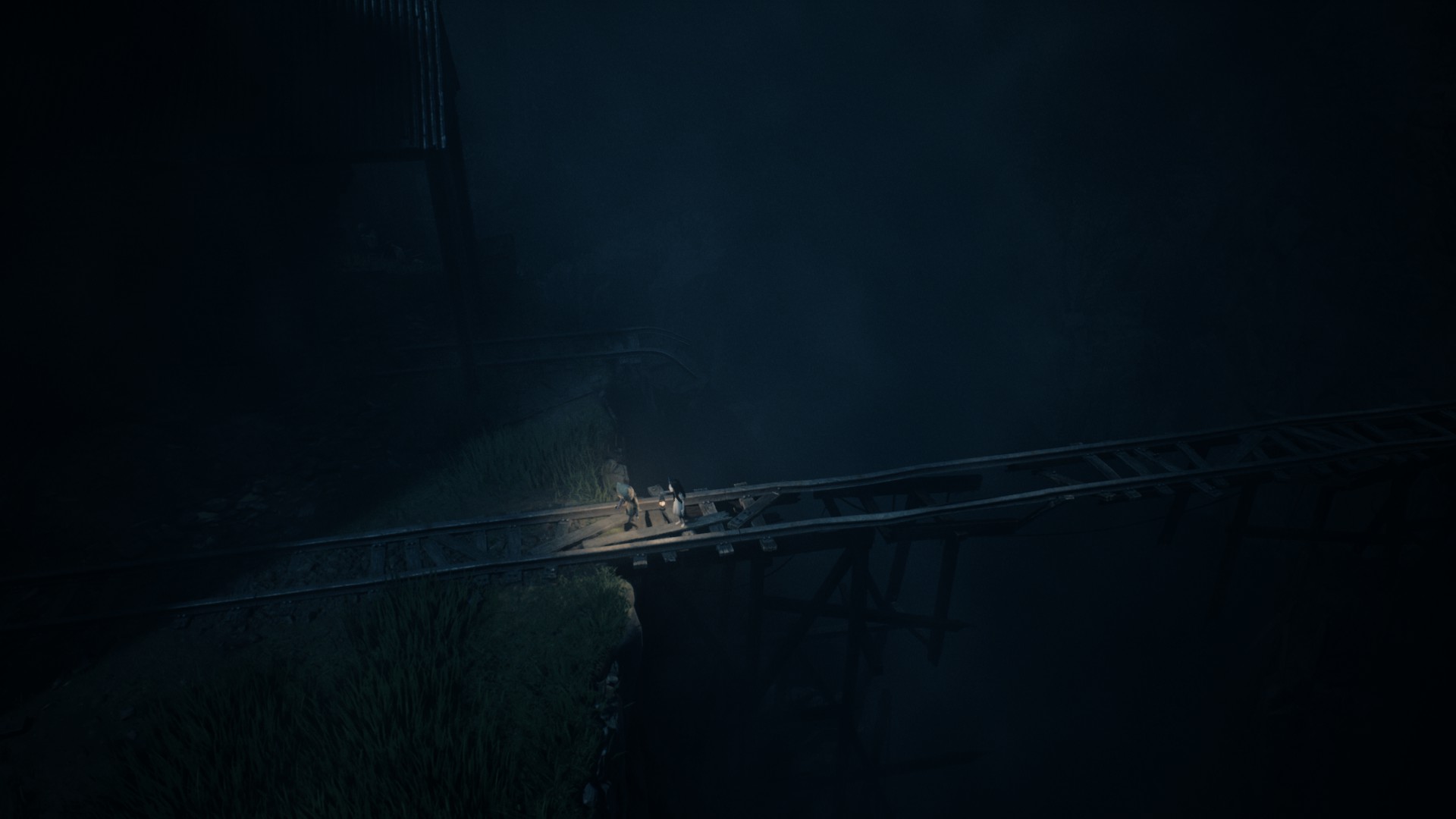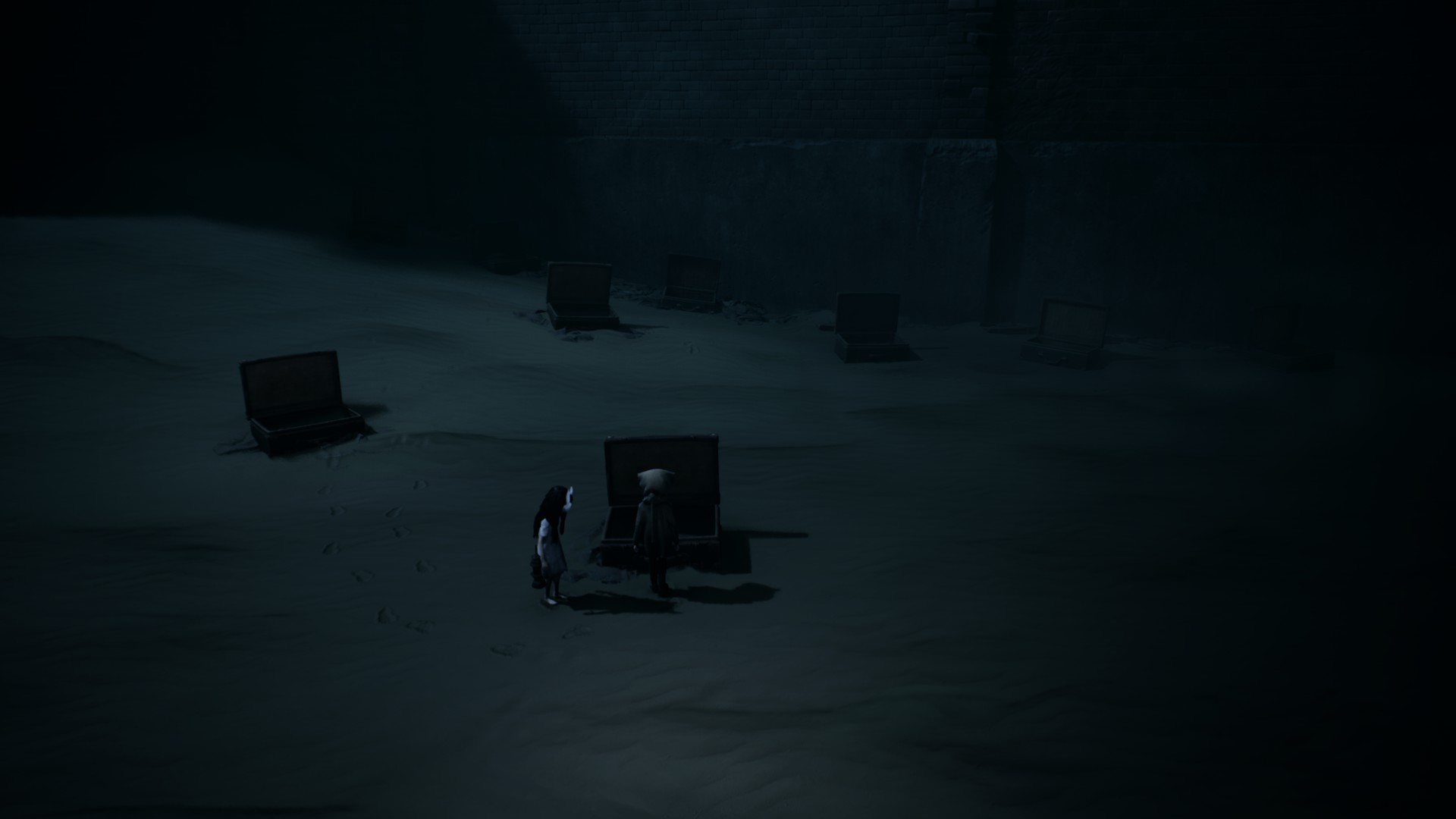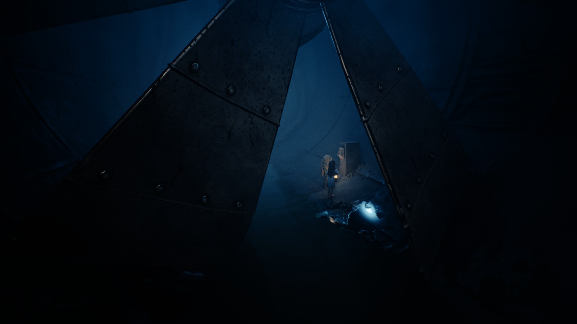 Très vite, on reconnaît la patte Tarsier : progression essentiellement latérale, environnements lugubres, silhouettes qui passent au loin, jumpscares parfaitement placés, et surtout coopération avec la fillette. Elle peut actionner des mécanismes, vous aider à atteindre des rebords trop hauts, ou encore créer des ouvertures indispensables à votre survie. Le duo fonctionne naturellement, comme un héritage assumé des mécaniques de Little Nightmares, mais avec cette dynamique à deux personnages qui modifie subtilement le rythme et les possibilités.