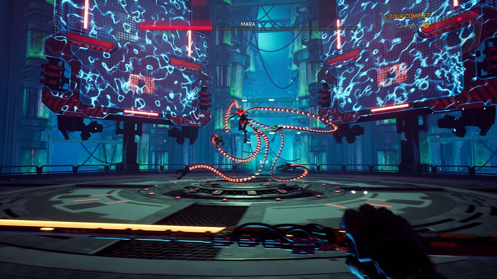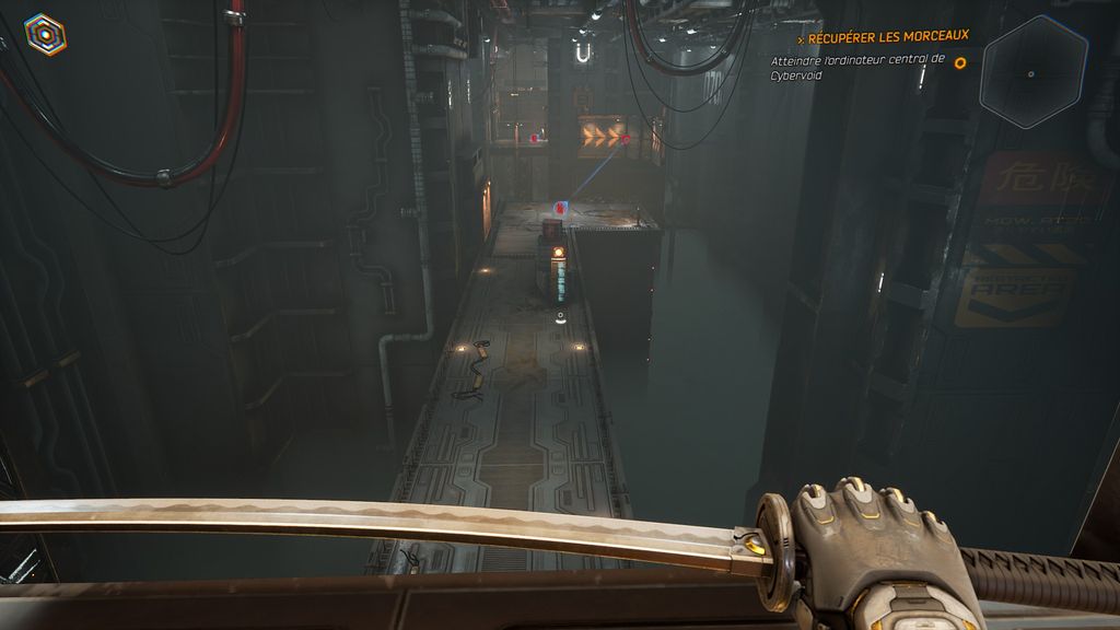 Ghostrunner vous demande donc beaucoup de résilience puisqu'un coup vous fait recommencer au point de contrôle précédent. Le jeu alterne savamment entre les phases de plateforme nerveuse et les combats contre des ennemis. Pour débloquer des nouvelles capacités, il vous faut passer par le Cybervoid, une simulation de l'Architecte qui vous apprend à maîtriser les bases du jeu. La difficulté est vraiment bien calibrée, le seul obstacle à votre progression est la piètre qualité de vos réflexes. Le jeu est exigeant mais aide le joueur grâce à des points de contrôle réguliers et bien placés dans la progression des niveaux. Vous mettrez entre 5 et 8 heures pour venir à bout du jeu une première fois. Atteindre la perfection vous demandera davantage d'investissement, d'autant plus si vous cherchez à récupérer tous les objets à collectionner.