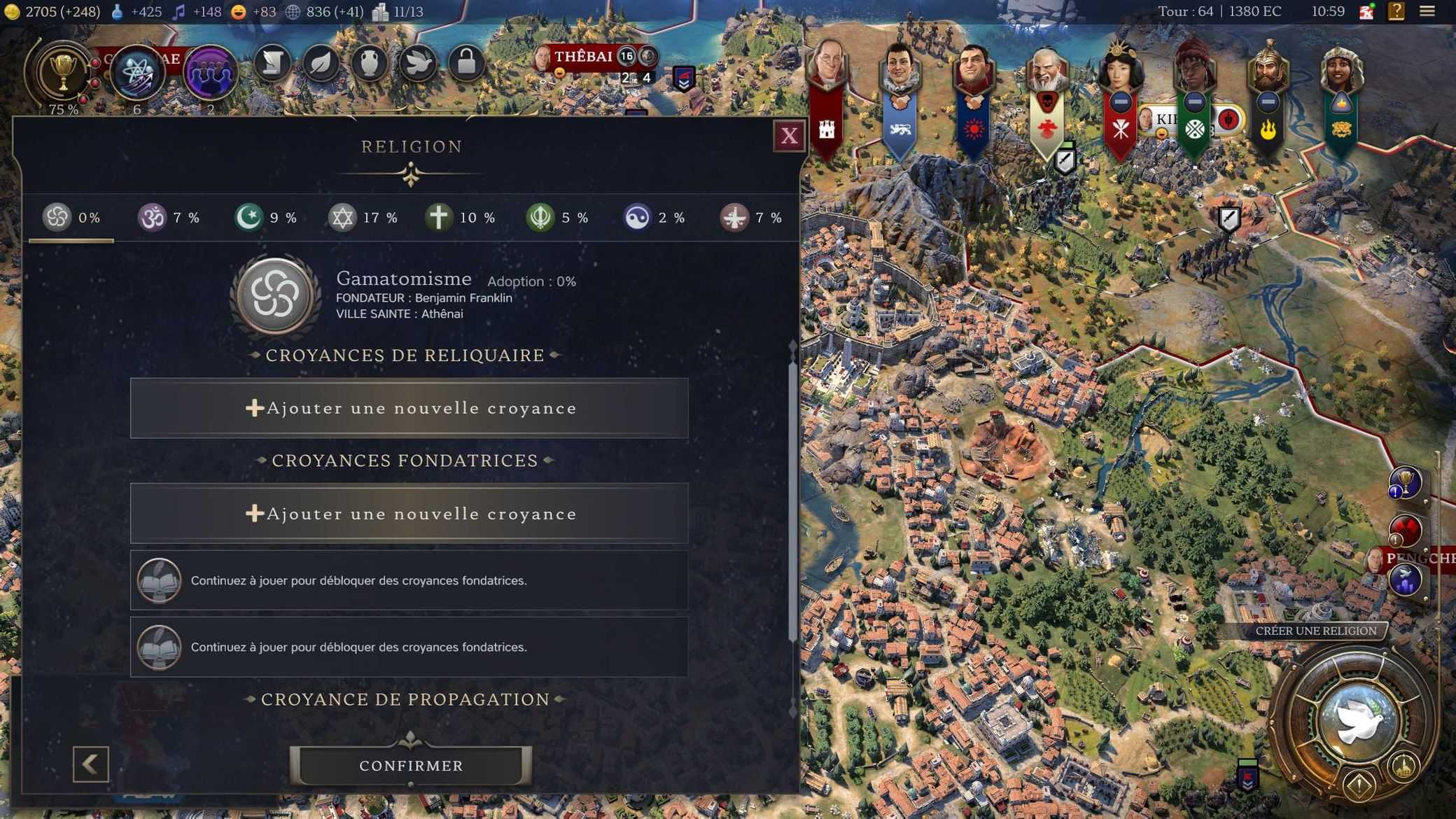 Rien ne se perd, tout se transforme. C'est de cette manière que la philosophie de développement des Civilization se fait : ⅓ de bases, ⅓ d'évolutions, ⅓ de nouveautés. Et c'est aussi ce concept de gameplay qui rythme les piliers ludiques de Sid Meier's Civilization VII. Les passages d'ère font évoluer ce que vous possédez déjà, et les aménagements modernes recouvrent peu à peu les bâtisses plus anciennes. L'idée de ce nouvel opus est assurément cohérente, tout en conservant vos habitudes si vous êtes joueur ou joueuse de la série. Évidemment, ne proposant que le jeu de base sans des années d'ajout de contenu, l'expérience n'est pas aussi complète que ses aînés. Mais jouer à ce nouvel opus est un plaisir, tout de même marqué par une ergonomie bancale. La principale déception réside finalement dans une direction artistique assez convenue et une interface utilisateur quelque peu désuète.