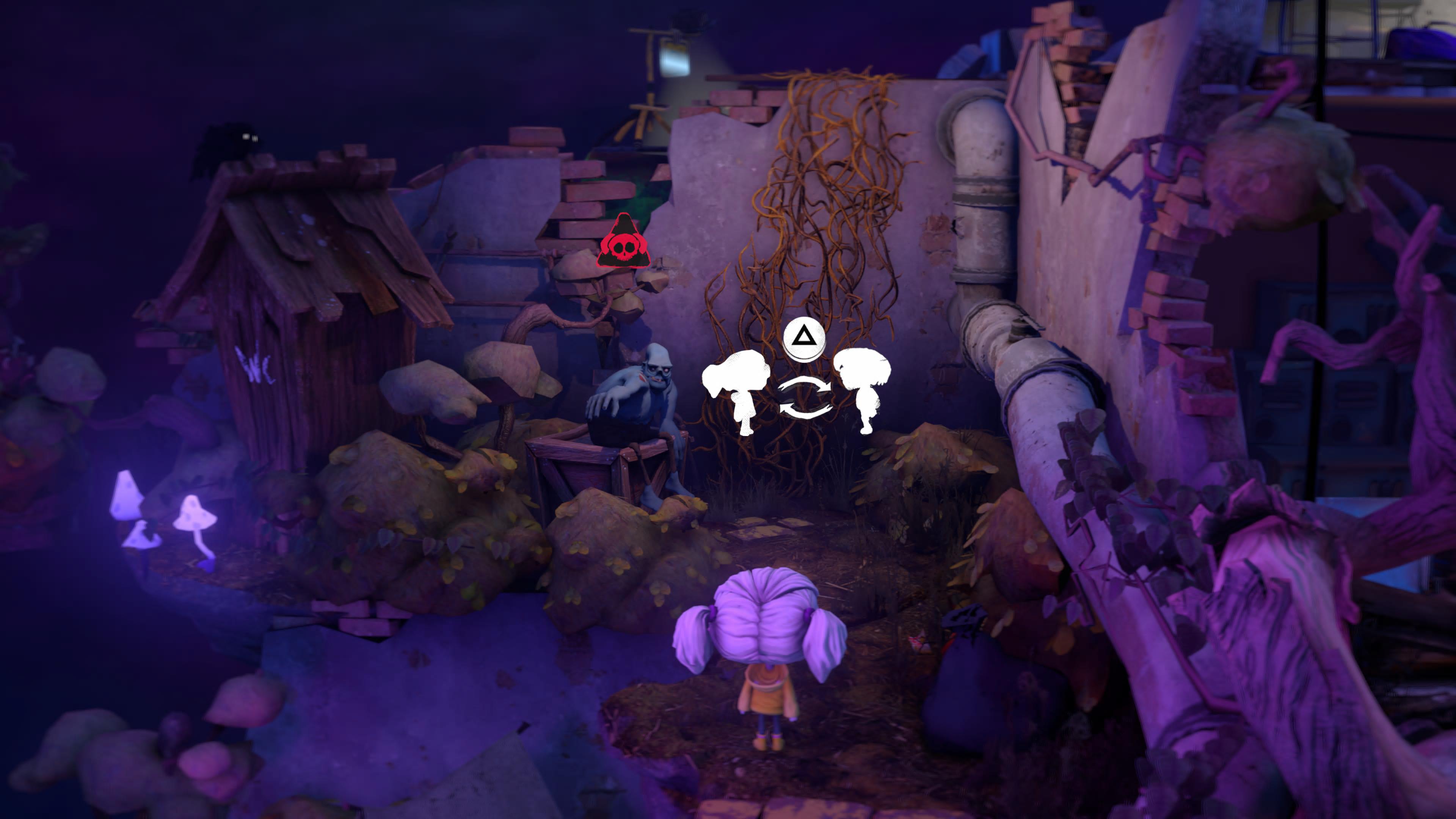 Avant de vous lancer dans l'exploration d'un chapitre, vous avez la possibilité de prendre une vue d'ensemble de la carte, en la faisant pivoter à 360° et en zoomant, vous permettant de repérer rapidement les différentes zones à explorer et les points d'intérêt qui vous seront essentiels pour la progression. Concernant les énigmes ou problèmes à résoudre, Gloomy et Nena forment un duo parfaitement complémentaire. Par sa nature zombiesque, Gloomy est doté d'une force à toute épreuve et est très utile pour lancer des objets, en pousser ou en porter d'autres. Nena, quant à elle, est le cerveau (non mangé) du duo : elle manipule les objets technologiques et peut surtout, contrairement à Gloomy, marcher dans la lumière artificielle sans crainte de mourir.