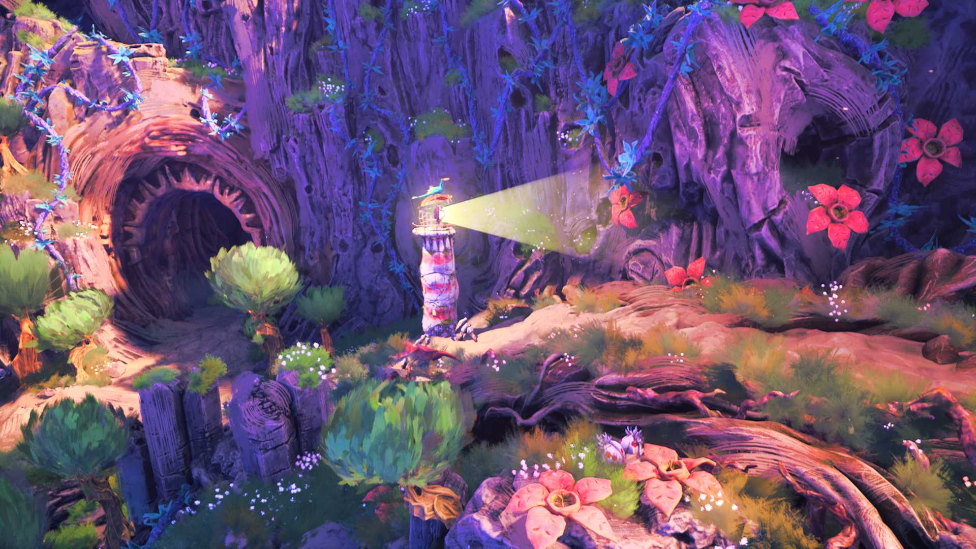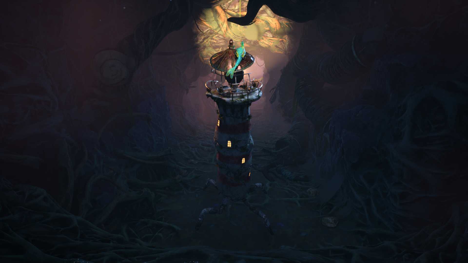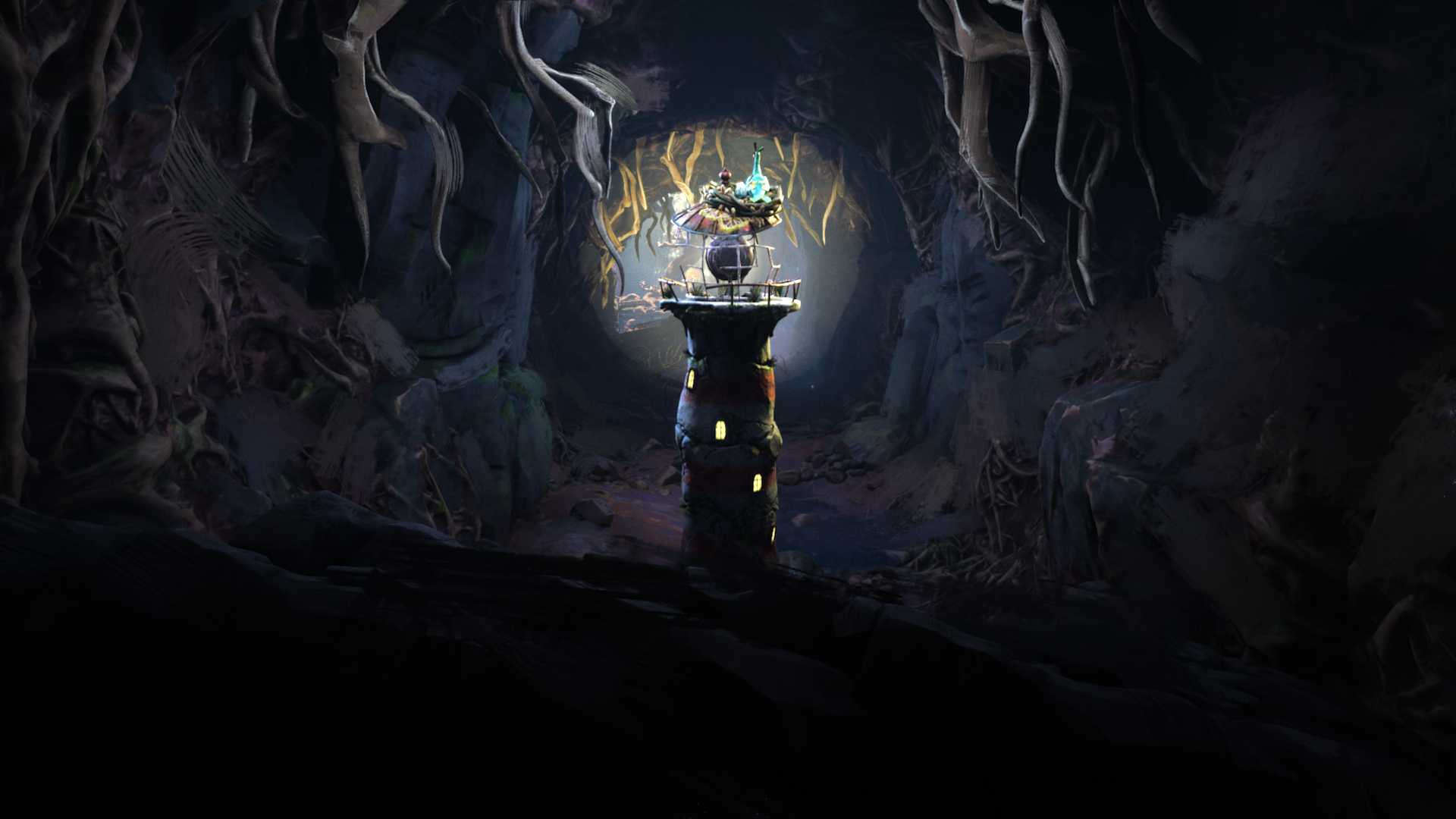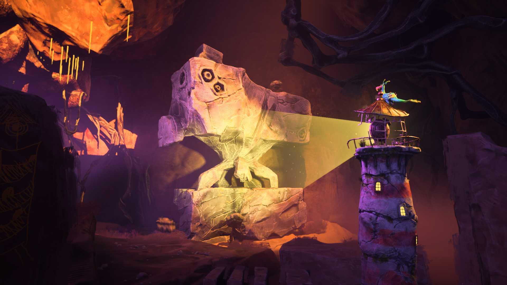 L'un des grands coups de génie de Double Fine, c'est d'avoir rendu un bâtiment expressif, uniquement à travers ses gestes et son regard cyclopique. Et quand le gameplay s'en mêle, la magie opère : le phare éclaire un passage, Brindille actionne un levier, la lumière fait pousser des plantes ou révèle des fragments du passé.