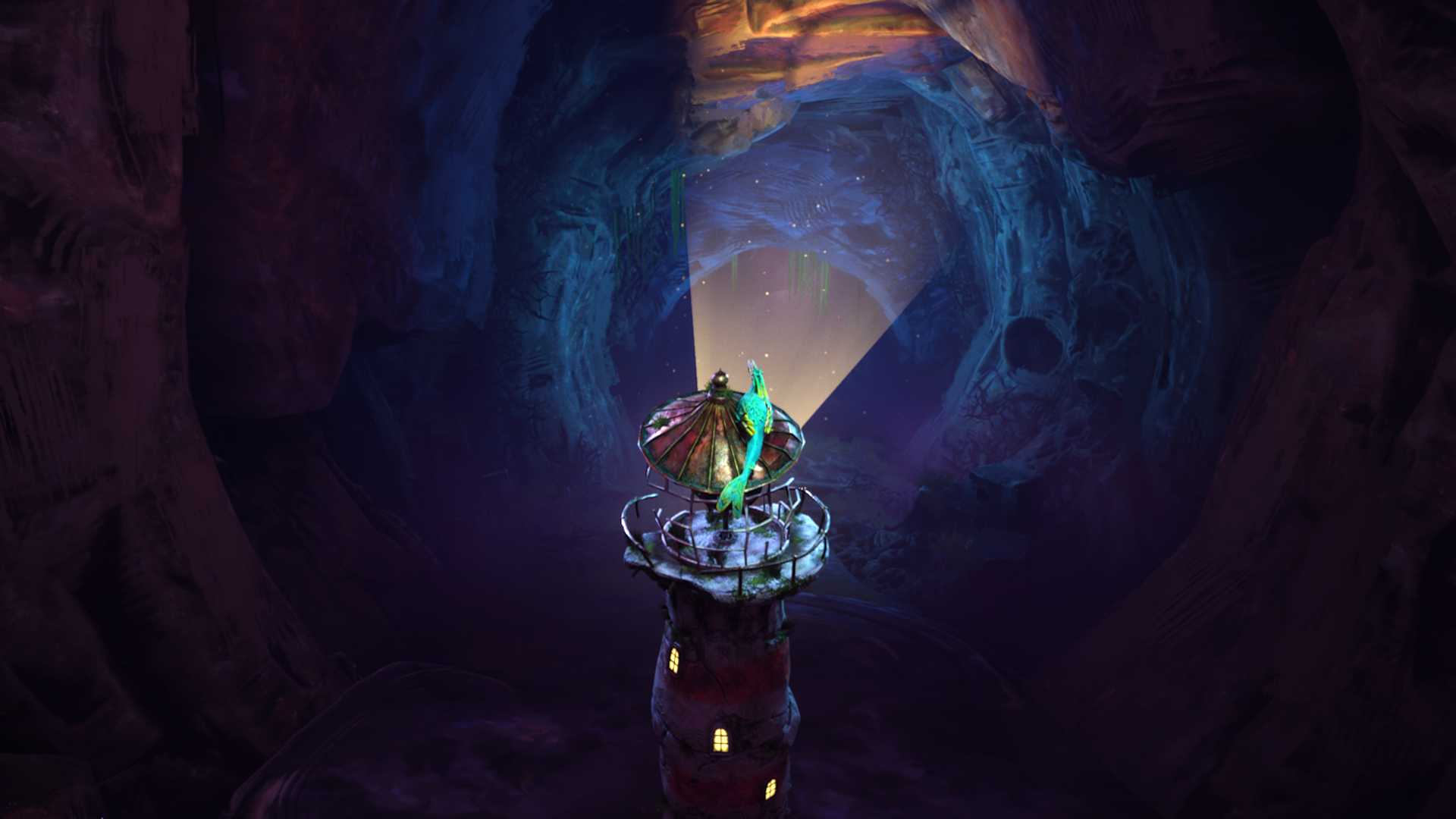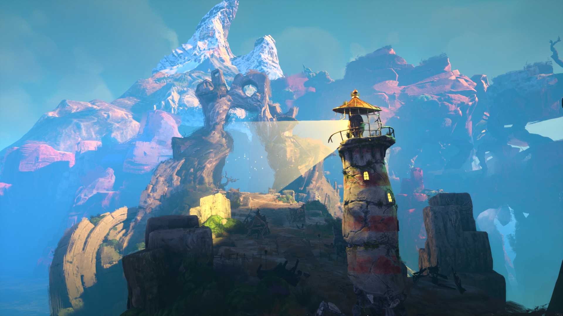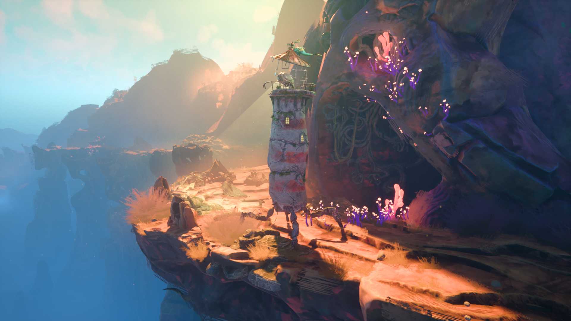 L'un des grands coups de génie de Double Fine, c'est d'avoir rendu un bâtiment expressif, uniquement à travers ses gestes et son regard cyclopique. Et quand le gameplay s'en mêle, la magie opère : le phare éclaire un passage, Brindille actionne un levier, la lumière fait pousser des plantes ou révèle des fragments du passé.
