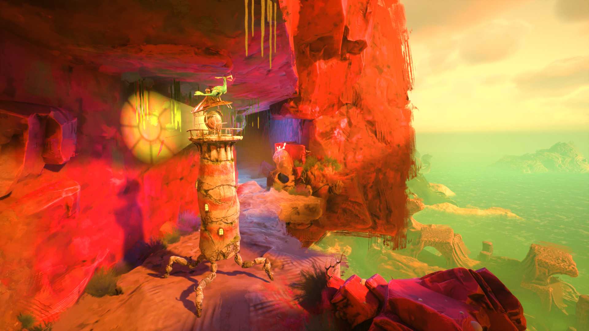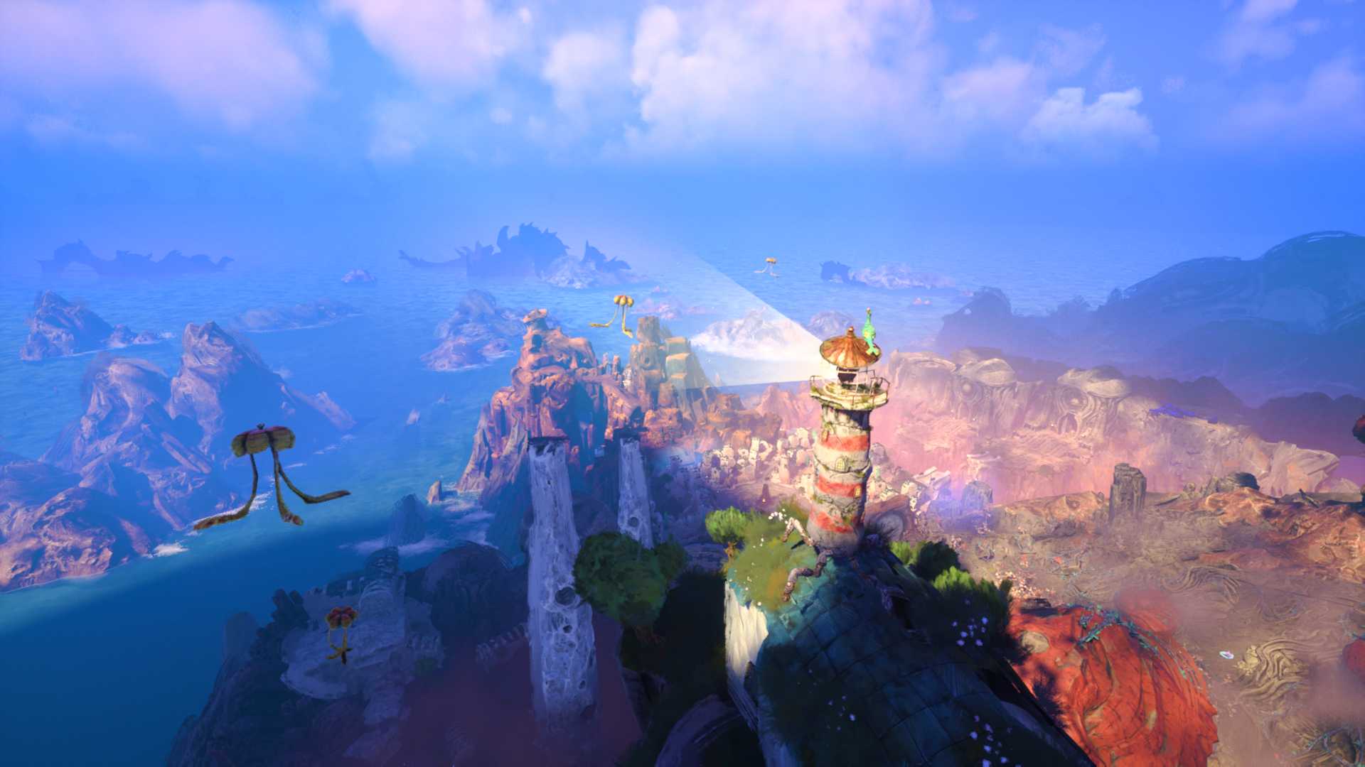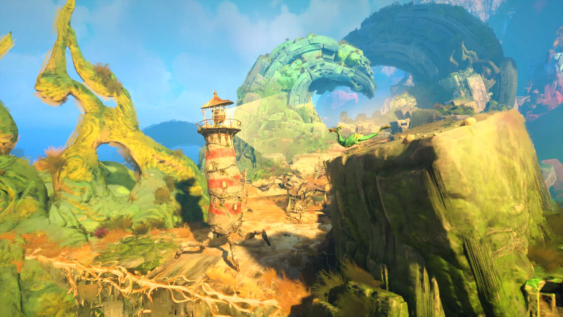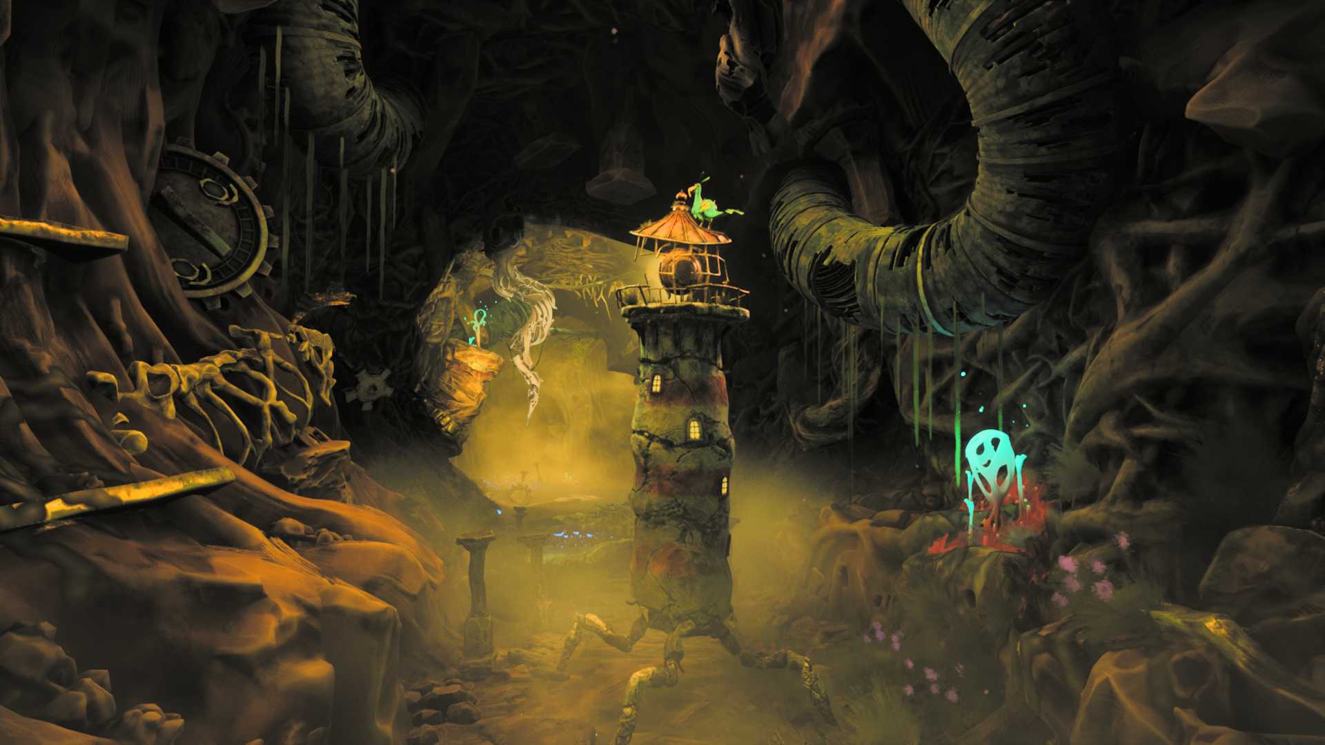 L'un des grands coups de génie de Double Fine, c'est d'avoir rendu un bâtiment expressif, uniquement à travers ses gestes et son regard cyclopique. Et quand le gameplay s'en mêle, la magie opère : le phare éclaire un passage, Brindille actionne un levier, la lumière fait pousser des plantes ou révèle des fragments du passé.