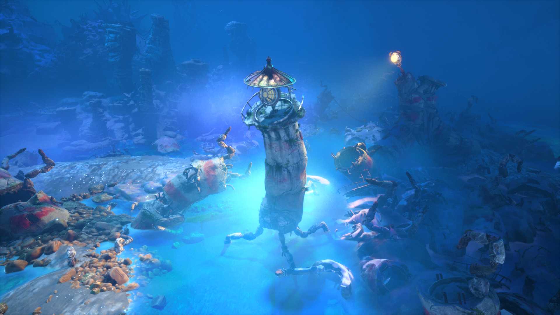 L'univers passe sans prévenir de la féerie lumineuse à la mélancolie marine. D'abord chatoyant et presque enfantin, Keeper devient régulièrement sombre à mesure que vous avancez, rappelant parfois les cauchemars feutrés de Limbo ou Little Nightmares. La bande-son, envoûtante, évoque parfois du Sigur Rós, avec des boucles sonores qui bercent ou oppressent selon les moments. Tout est cohérent, organique, voire même psychédélique – bref, c'est beau à pleurer.