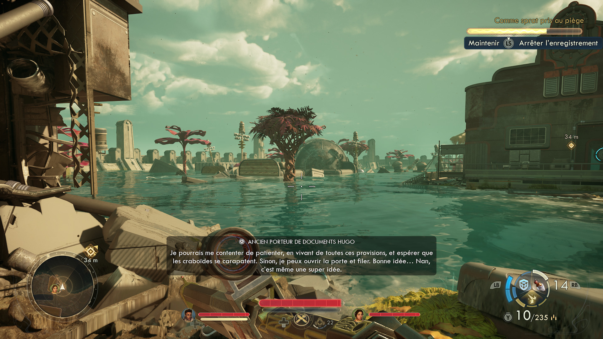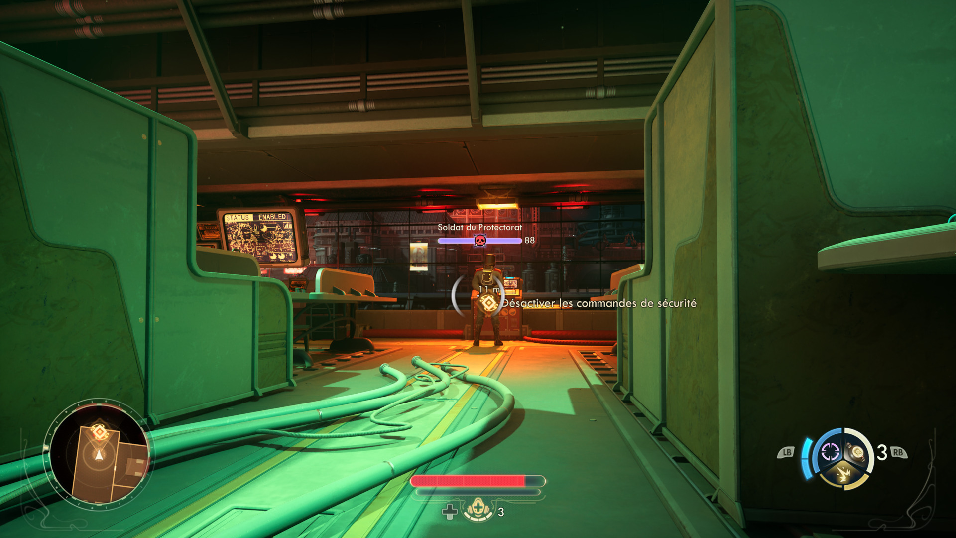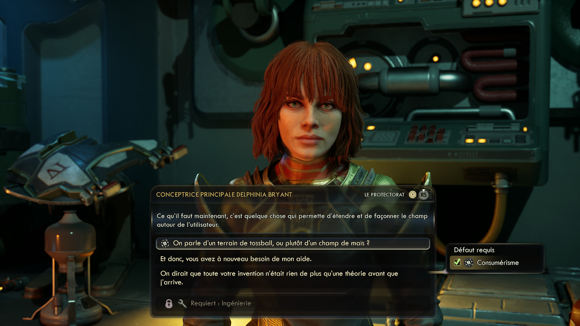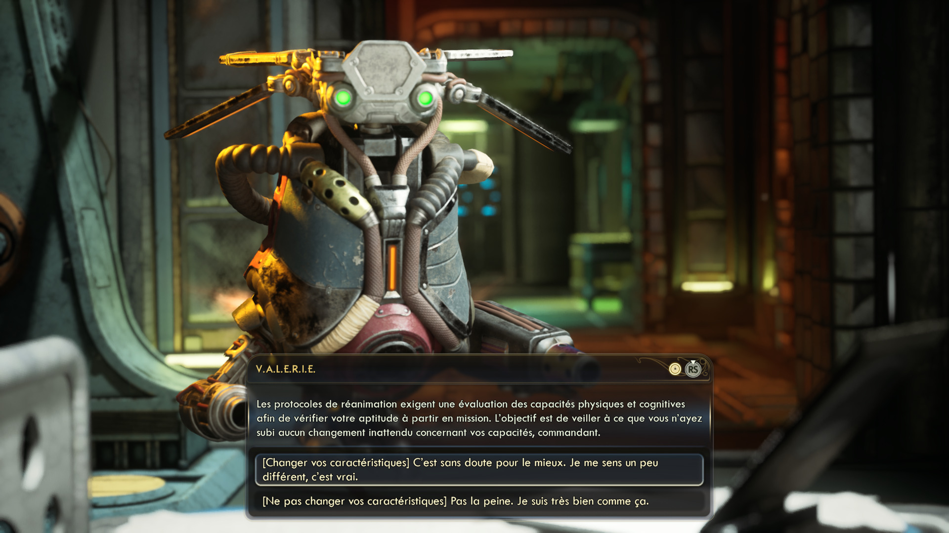 Les attributs de personnage de The Outer Worlds 2 disposent de leur propre identité. Votre caractérisation élémentaire passe par le choix de deux atouts qui offrent alors des avantages situationnels. Par exemple, être observateur permet des opportunités de fouille ou de dialogue. Aussi, des points de compétence permettent d'ouvrir les différents chemins de votre aventure, que ce soit, entre autres, avec la discrétion, le crochetage ou la médecine. Au-delà d'être des chiffres, ces différentes compétences révèlent une bonne variété de jouabilité. Évidemment, monter de niveau permet de gagner des points de statistiques et, plus occasionnellement, de nouveaux atouts. Le système de défauts revient dans cette suite. En fonction de vos rencontres, vous pouvez aléatoirement déverrouiller de nouveaux traits. Ceux-ci apportent des bonus et des malus, à vous de les accepter. Grâce à tout cet amas de caractéristiques, vous avez la possibilité d'un large panel d'angles d'attaque à la résolution de vos quêtes : de la force brute à distance ou au corps-à-corps, la discrétion et l'infiltration, le dialogue en ayant ou non fouillé le terminal personnel de votre cible, et encore bien d'autres moyens détournés. Une immense richesse de jeu qui ne peut que pousser à s'essayer à différents chemins lors d'une prochaine partie.