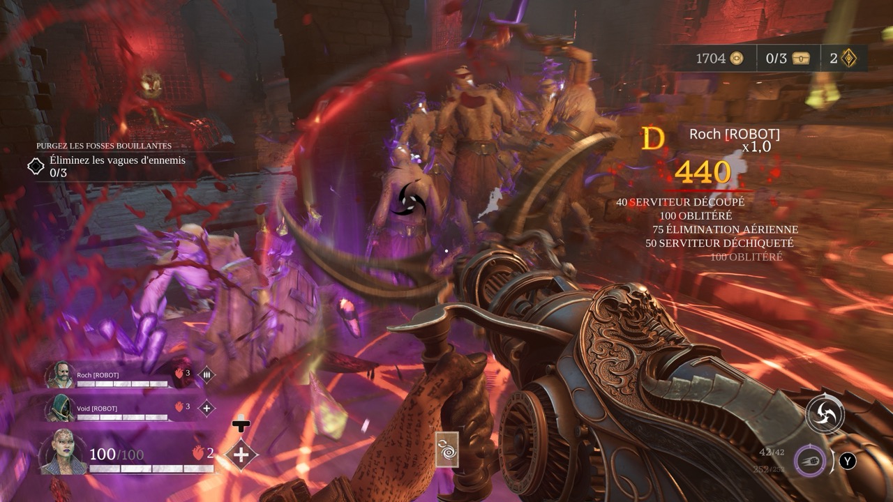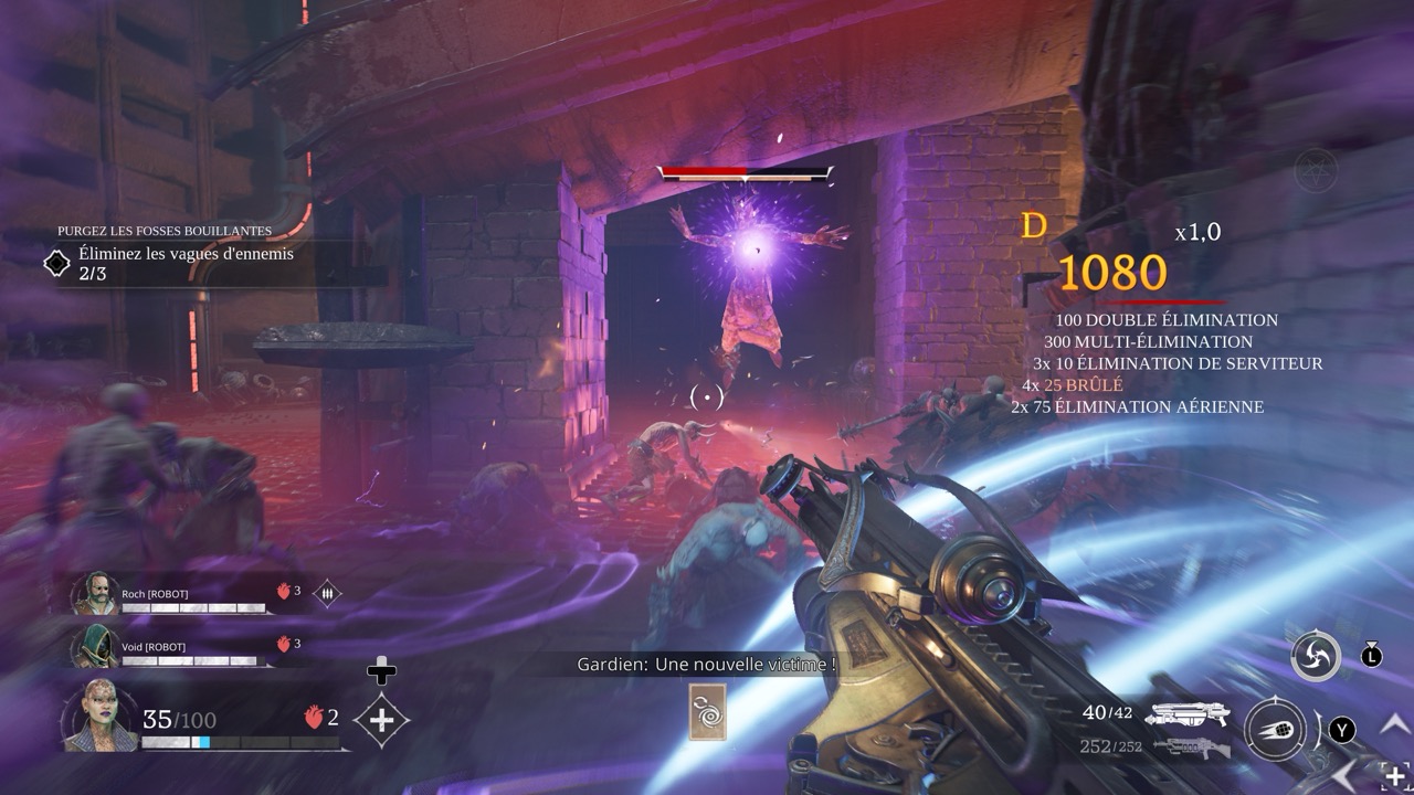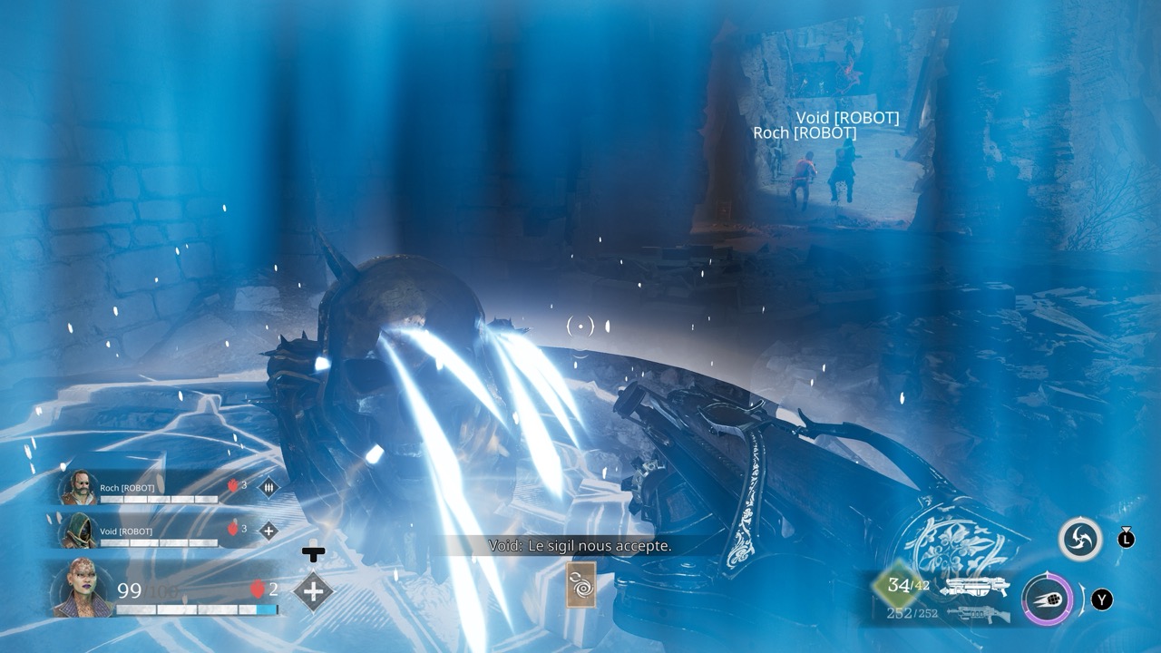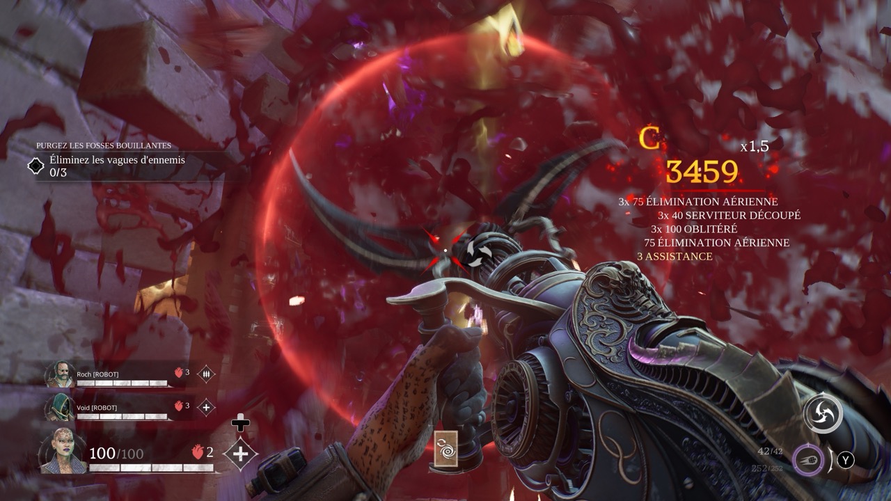 Imaginez un Doom qui enchaînerait les arènes de combat... en version coop. Vous alternez entre le fusil à pieux, le lance-glace ou la mitrailleuse démoniaque, tous dotés de doubles tirs aux effets délicieusement excessifs. Le plaisir vient donc du rythme : pas de temps mort, pas d'hésitation, juste une transe nerveuse, portée par une bande-son metal qui vous martèle la rétine autant que les tympans.