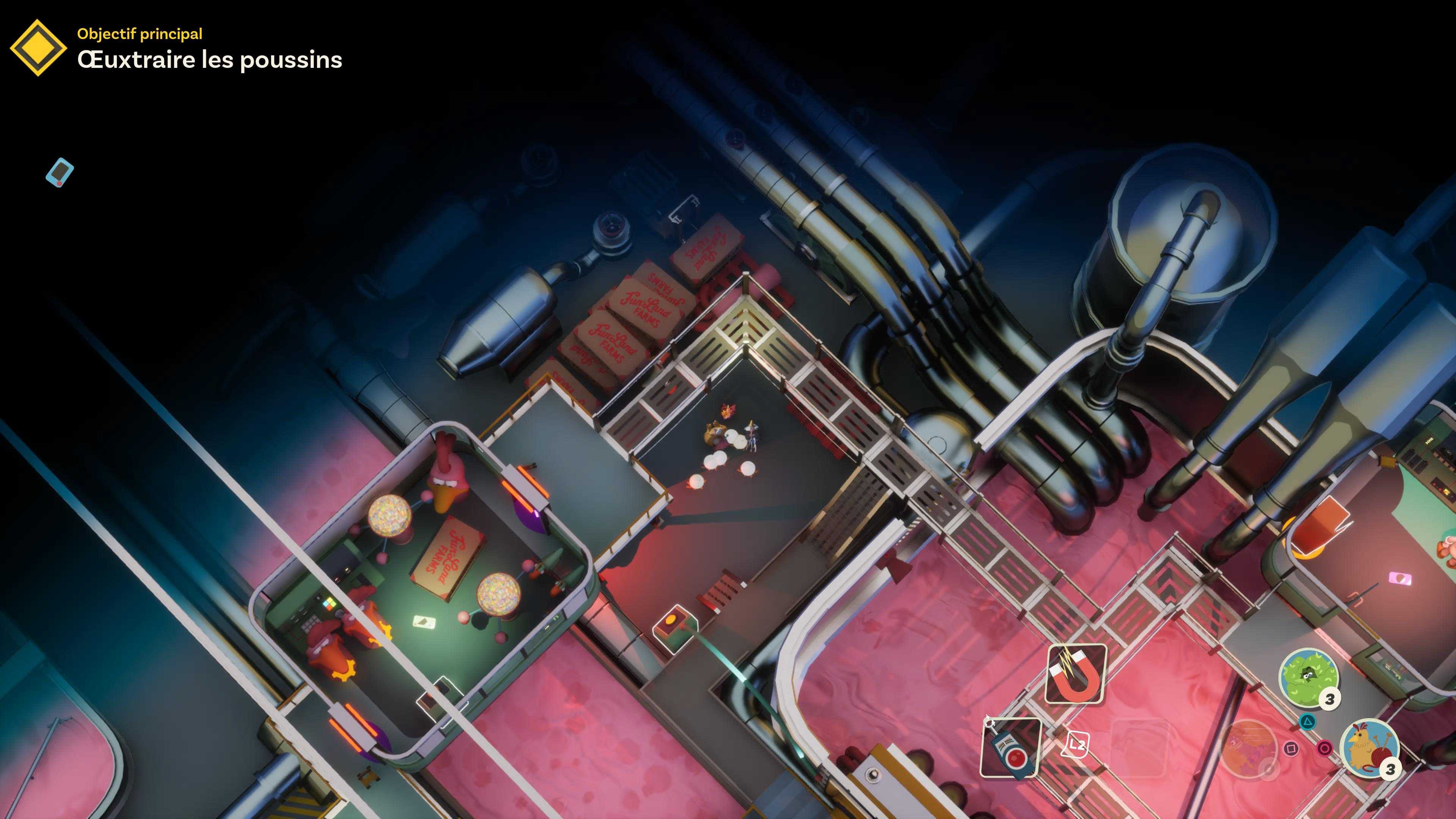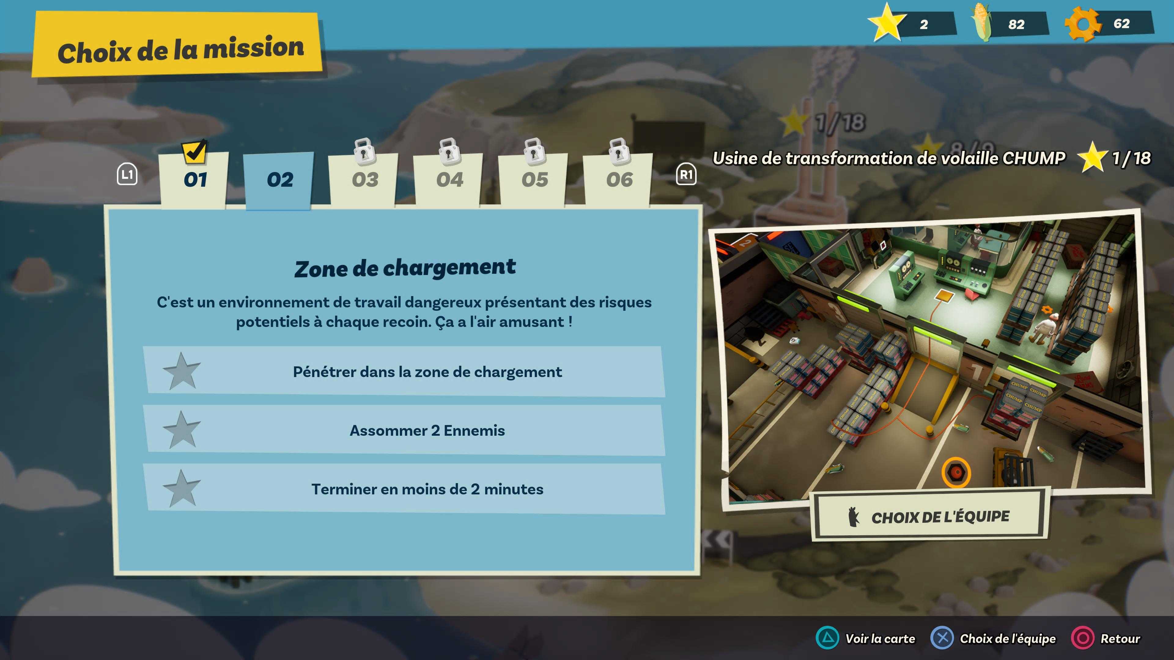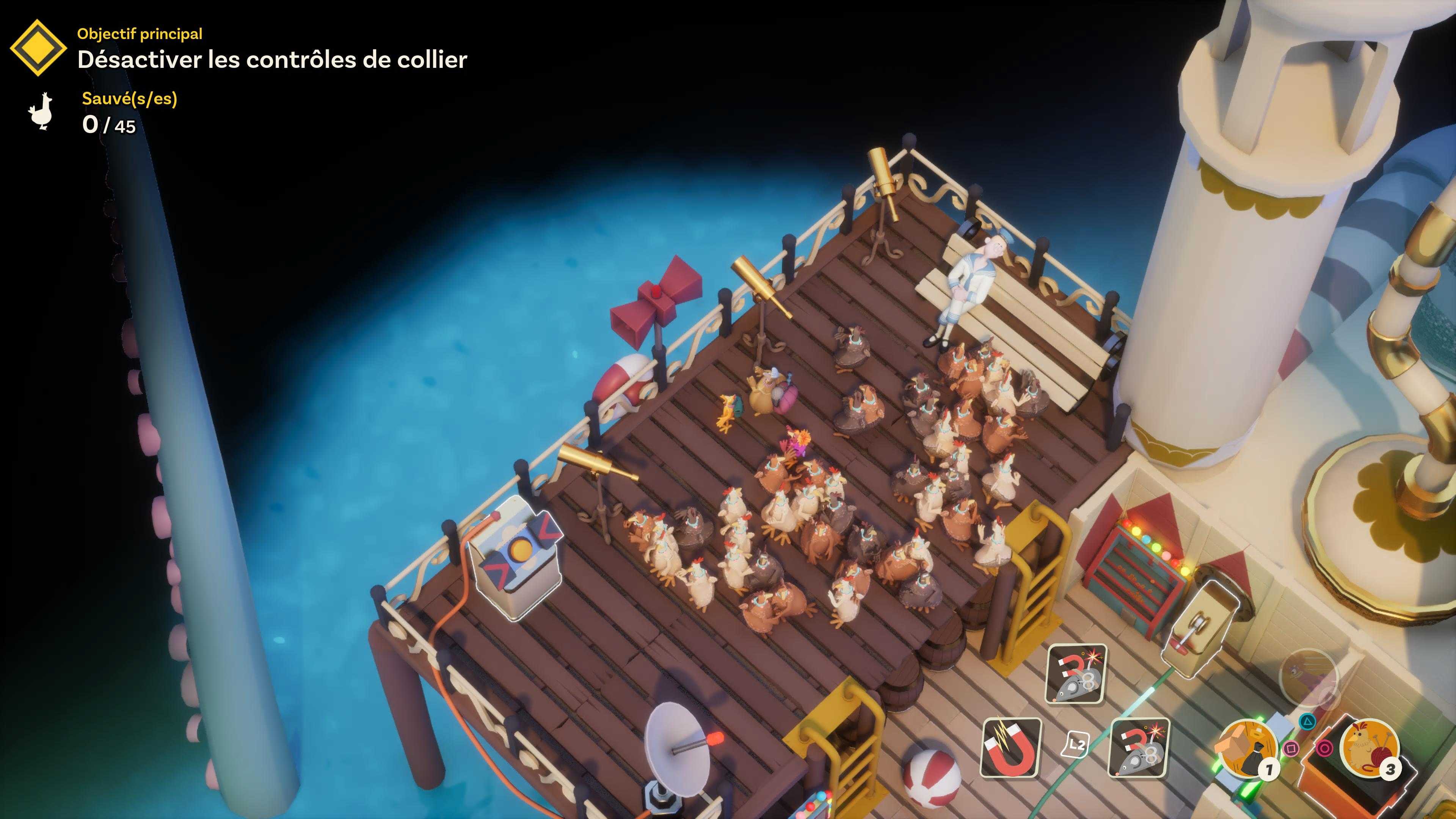 Le jeu prouve d'ailleurs que l'infiltration, souvent associée à des cadres sérieux ou réalistes, se marie étonnamment bien avec un ton humoristique. Les mécaniques restent solides, mais le cadre décalé les rend accessibles à tous. Enfants, adultes, curieux ou vétérans : tout le monde a sa place dans ce poulailler. Les collectibles et le système d'étoiles, eux, donnent même envie de revenir gratter dans chaque recoin pour décrocher le 100 %.