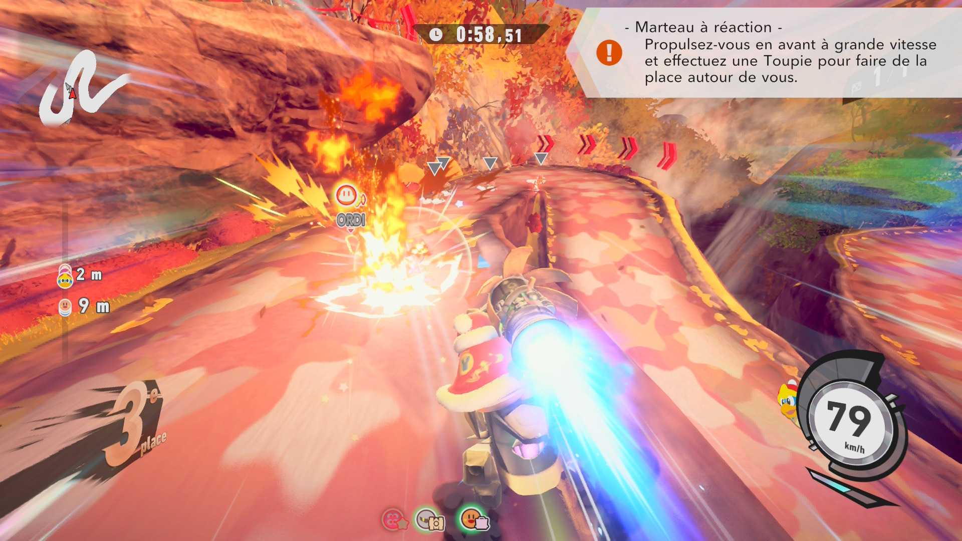 Même si vous finissez dernier, le jeu vous félicite et vous récompense souvent avec des bonus.