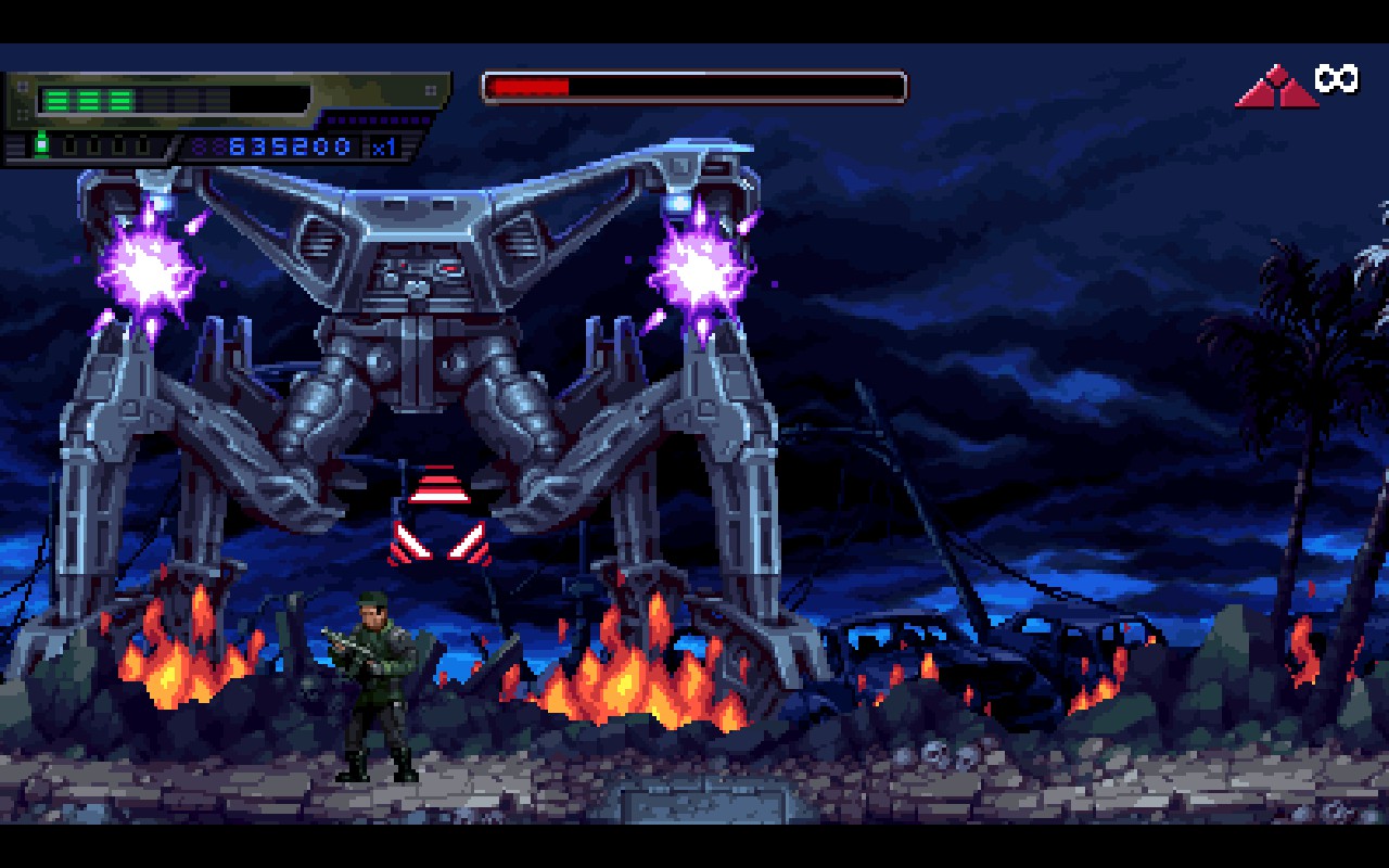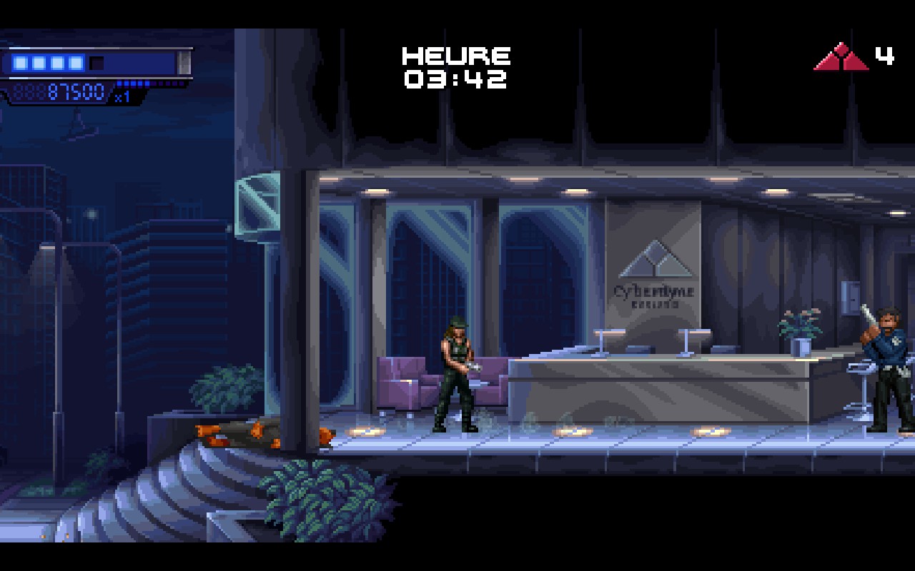 N'espérez pas non plus retrouver un rogue-lite comme c'est la mode aujourd'hui. Terminator 2D ne propose aucune amélioration au fil des parties, aucun avantage à recommencer un run, aucune forme de progression hormis quelques trophées. C'est un titre à l'ancienne, conçu avec les codes de l'époque et tout ce qui va avec, dont une certaine forme de frustration. Mais au moins, vous savez.
