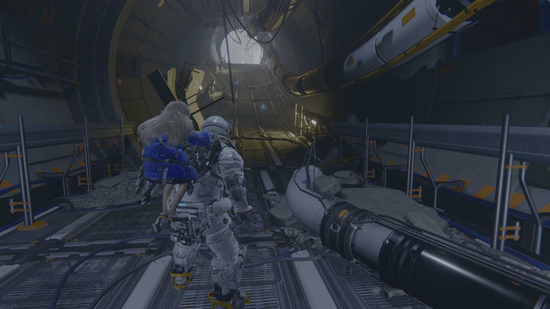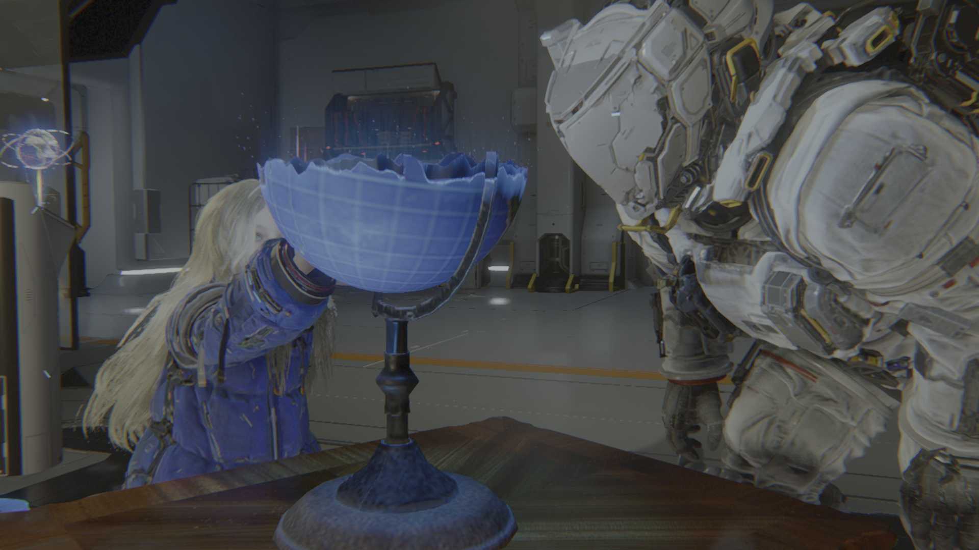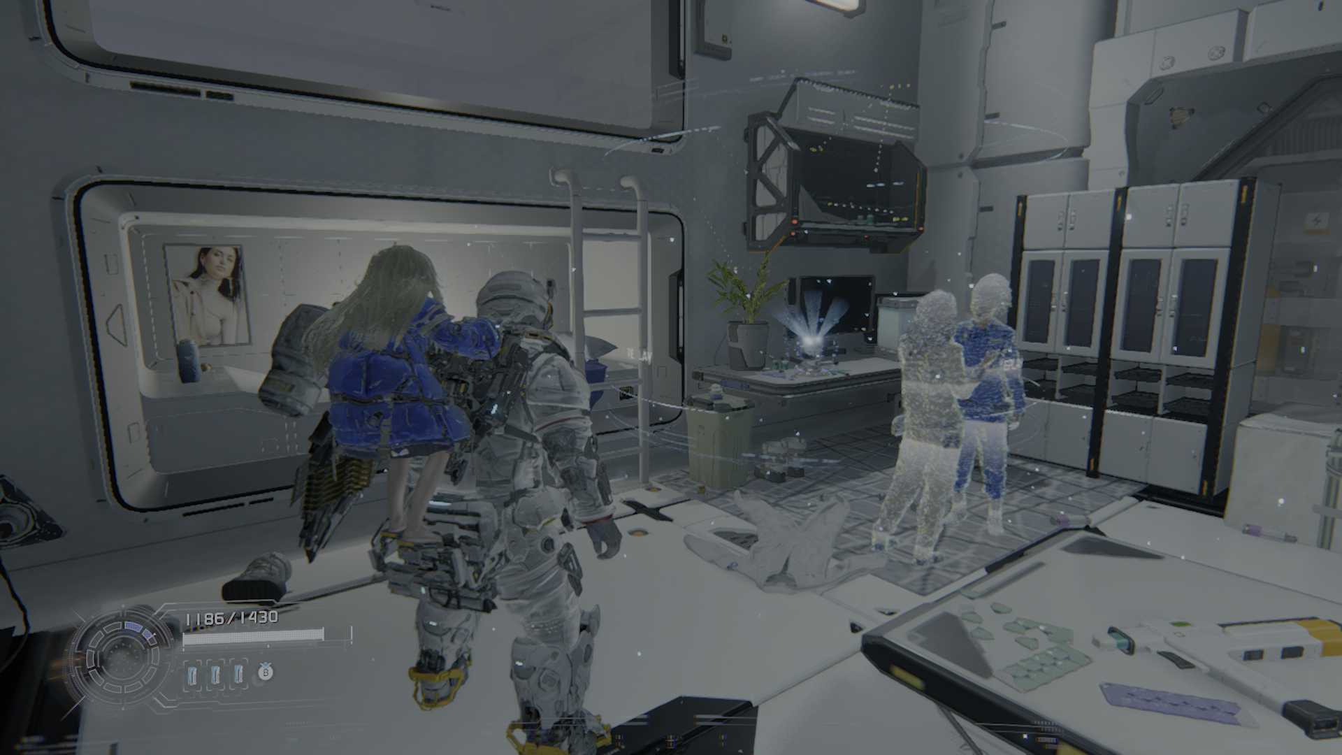 La comparaison avec Death Stranding – un héros accompagné d'une enfant – vient naturellement à l'esprit, mais la parenté s'arrête là. Pragmata est bien plus arcade, bien moins contemplatif, et son sens de la mise en scène reste dans des rails beaucoup plus classiques que l'ovni de Kojima. Son côté arcade justement, avec sa progression parfois rébarbative au refuge, peut frustrer les joueurs qui cherchent une aventure fluide et immersive de bout en bout. En revanche, ceux qui aiment maîtriser leur gameplay avant de repartir au front seront dans leur élément.