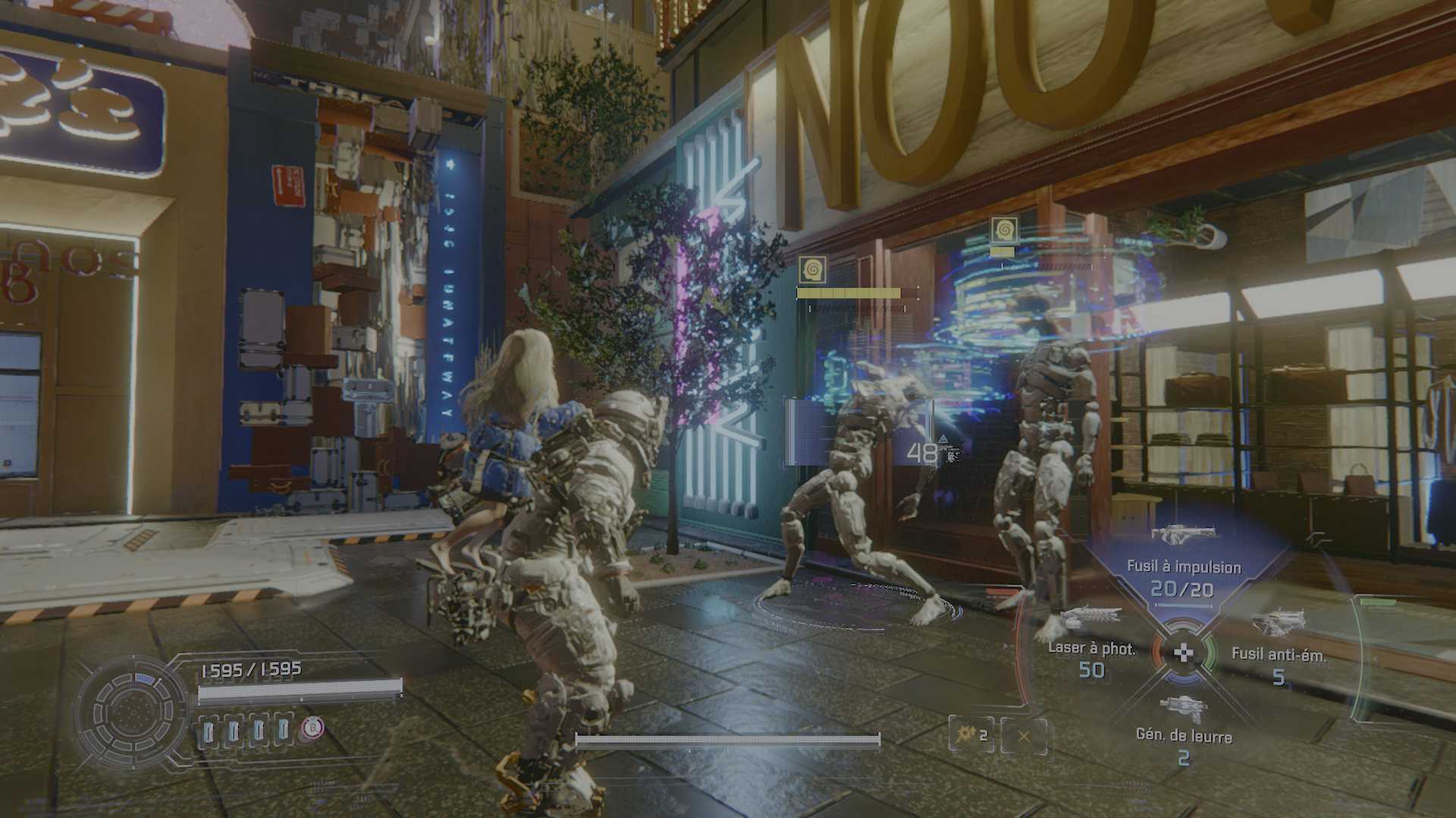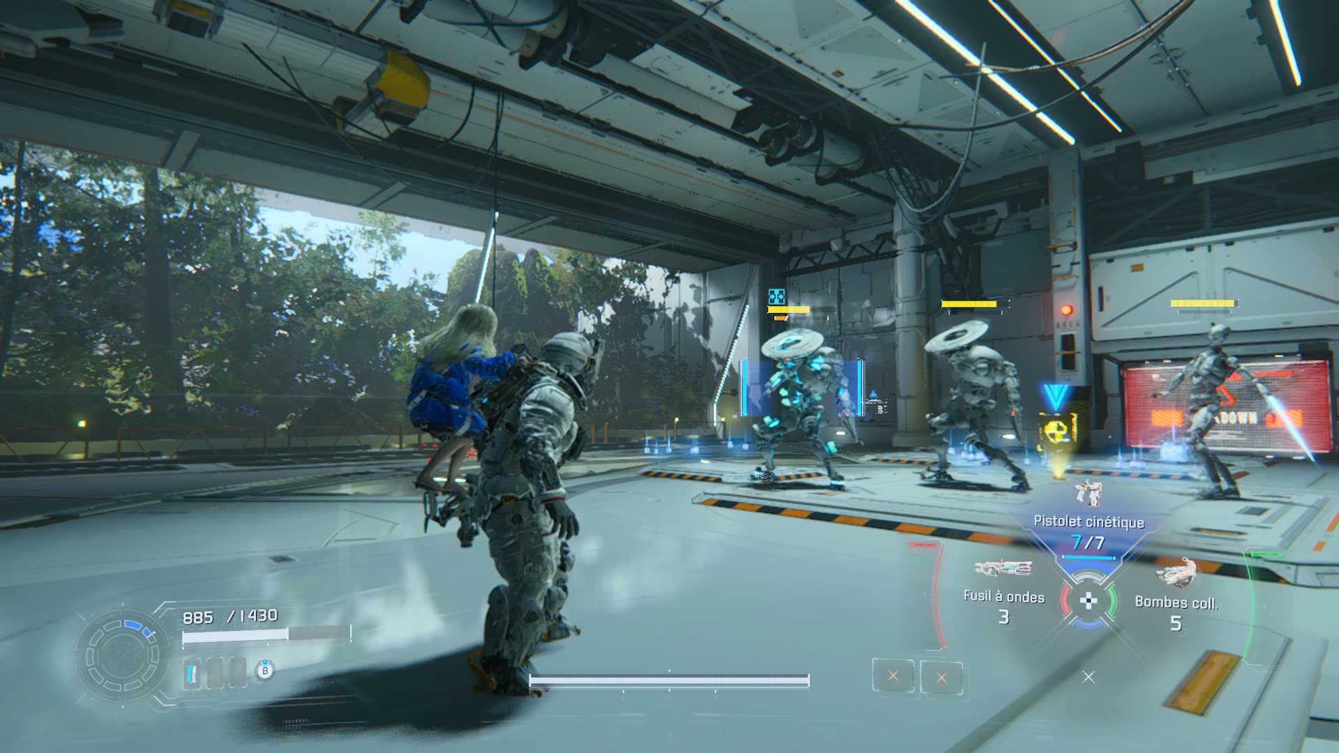 Les niveaux paraissent linéaires de prime abord, mais fouiller les recoins est fortement conseillé : des murs hologrammes dissimulent des munitions, et les bonus d'amélioration font toute la différence. À chaque mort, vous revenez au refuge, un espace sûr où vous gérez votre équipement avant de repartir à l'assaut – une mécanique stratégique qui a cependant le défaut de vous sortir brutalement de l'histoire.