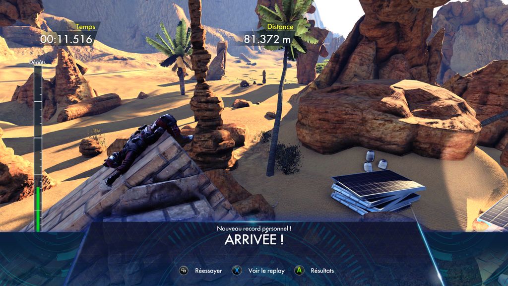 C'est dans un univers futuriste que commence votre "carrière" de pilote. Terminer une course vous donne accès, au minimum, à la médaille de bronze et permet d'engranger de l'expérience et de l'argent donnant accès à de nouveaux équipements purement cosmétiques. Pour débloquer tous les tracés, il vous faudra vous armer de patience et recommencer plusieurs fois un niveau afin de glaner une médaille d'argent ou d'or en fonction de votre temps et du nombre de fautes réalisées. Comme toujours dans la série, les différentes courses manquent d'homogénéité : certaines regorgent d'excellentes idées de level design tandis que d'autres se parcourent sans surprises. Au rayon nouveautés, vous ne noterez que l'arrivée du mode FMX : mode qui vous propose de réaliser différentes figures sur votre moto afin d'obtenir le meilleur score.